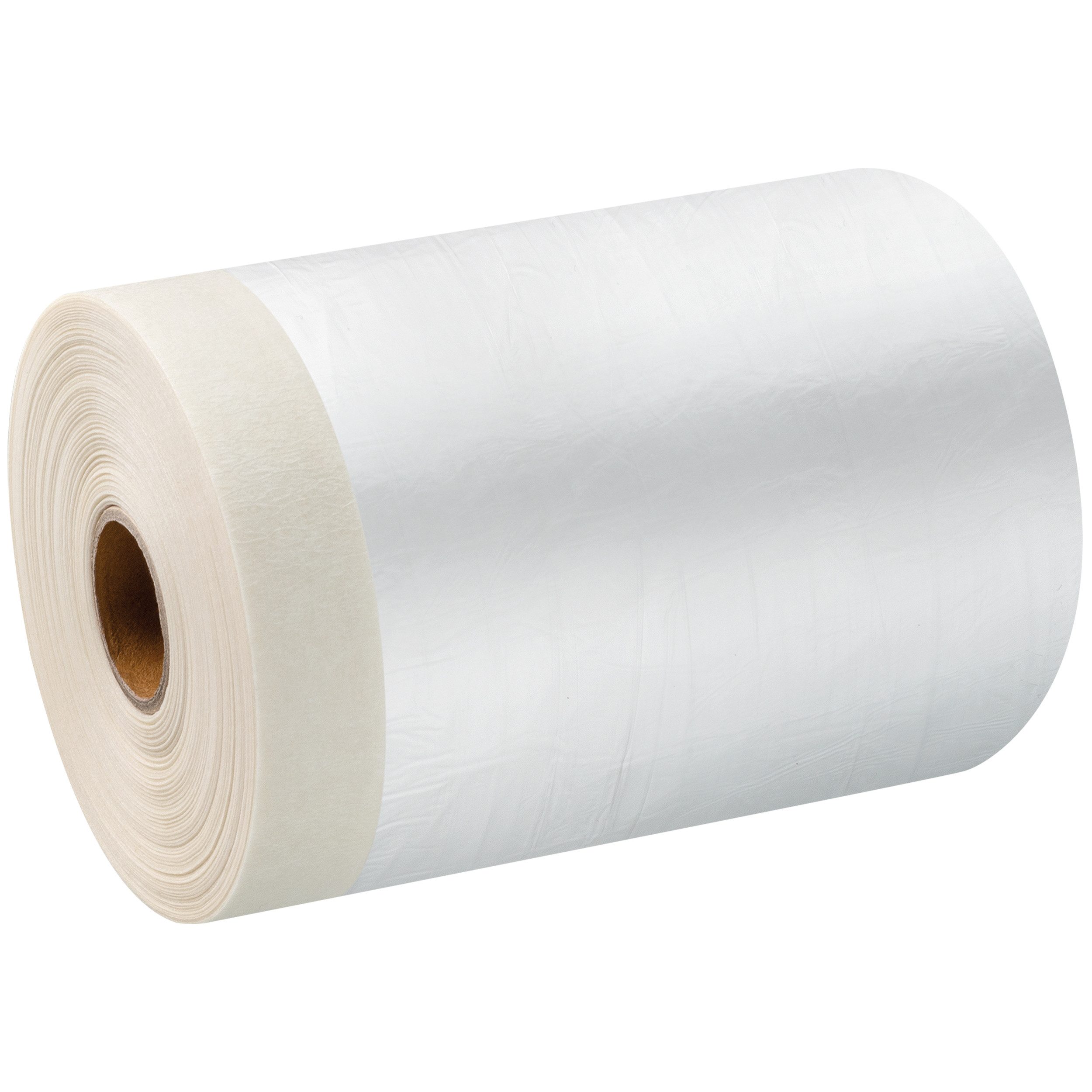 Reißfeste Abdeckfolie mit Kreppklebeband für Oberflächenschutz auf glatten und leicht rauen Untergründen im Innenbereich. Abmessung je Rolle: 300mm x 33m. Angebotsumfang: 3 Rollen (99m).