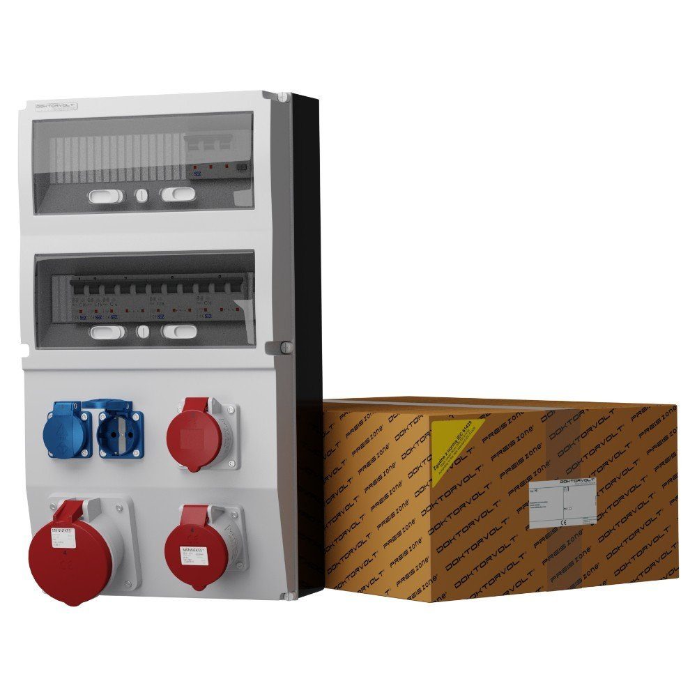 Anordnung der Steckplätze | 1x 63A 400V, 1x 32A 400V, 1x 16A 400V, 2x 230V |