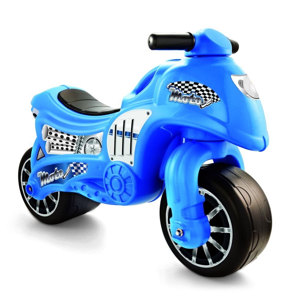 Da leuchten jedem Kind die Augen beim Anblick dieses stylischen Laufrad im sportlichen Motorrad Design. Das Modell überzeugt nicht nur mit der Optik, es punktet auch in der Praxis mit dem praktischen Halte- und Tragegriff vorm Lenker. Die breiten Reifen sorgen für einen guten Stand und stechen mit den in Chrom gehaltenen Speichen voll heraus. Der Kunststoff ist robust und Wetterfest und ohne scharfen Kanten.
