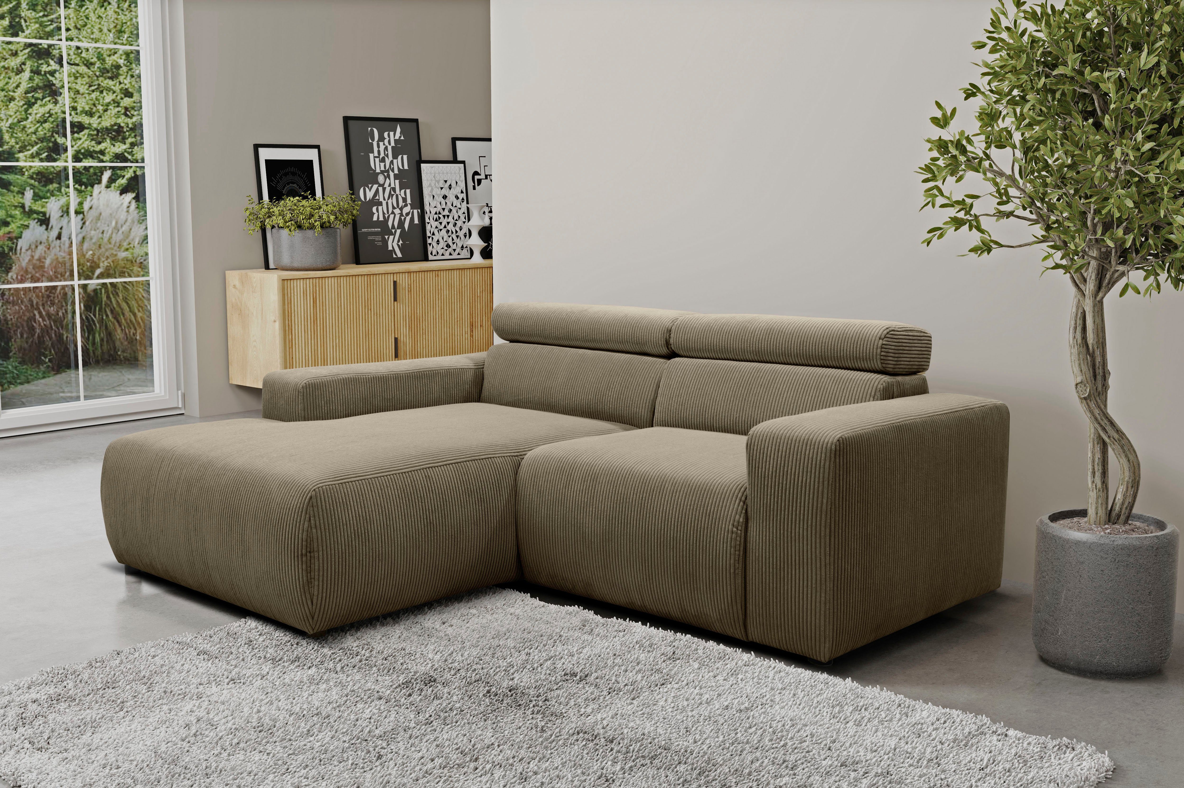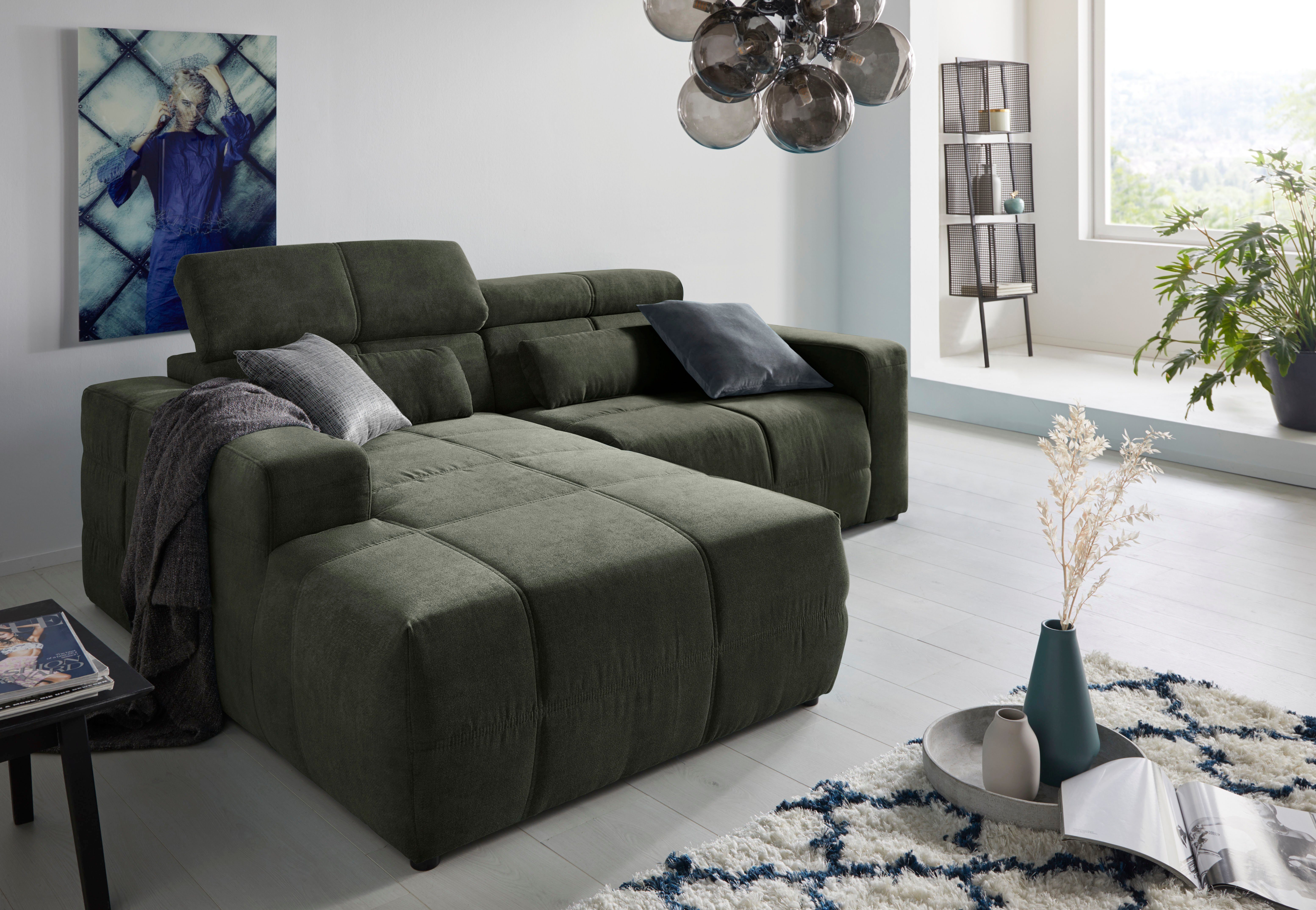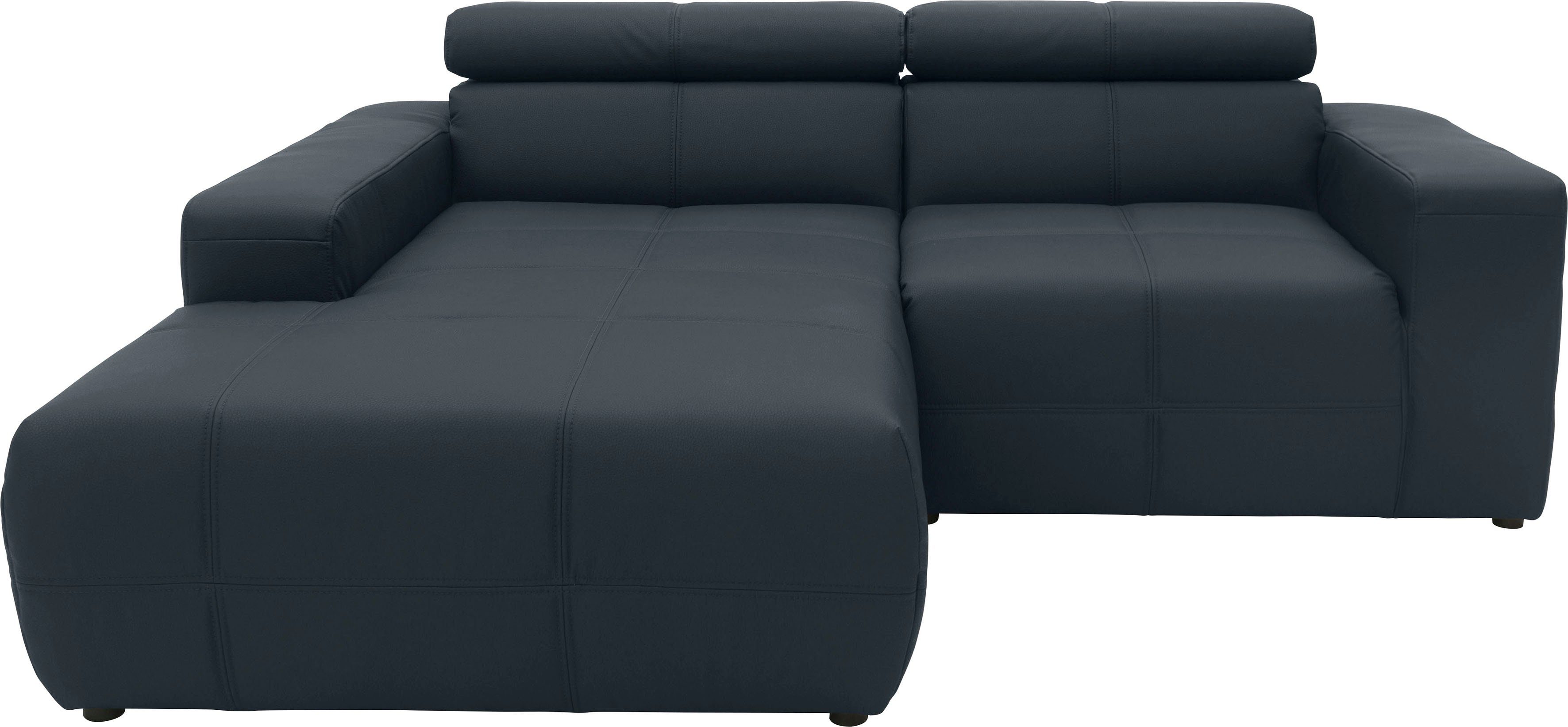 Dieses Ecksofa »Brandon, inkl. Kopfteilverstellung, B/T/H: 214/100/80 cm, L-Form« von DOMO collection bietet dir dank der Wellenunterfederung hohen Sitzkomfort und Tragfähigkeit. Mit der Rasterfunktion lässt sich die Couch in eine der vordefinierten Positionen bringen. Beim Ecksofa befindet sich die Recamiere, von vorne betrachtet, links. Die schwarzen Füße aus Kunststoff sind belastbar und äußerst formstabil. Dieses Modell wurde von Hand gefertigt.