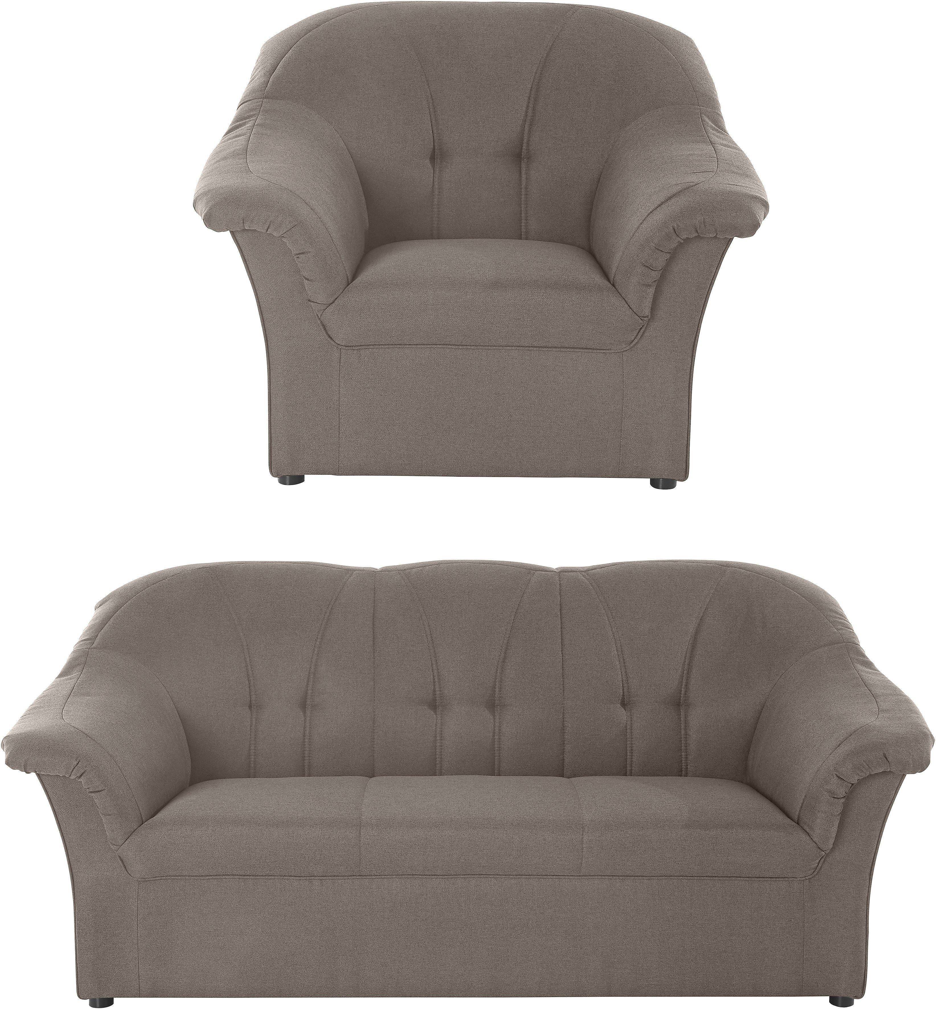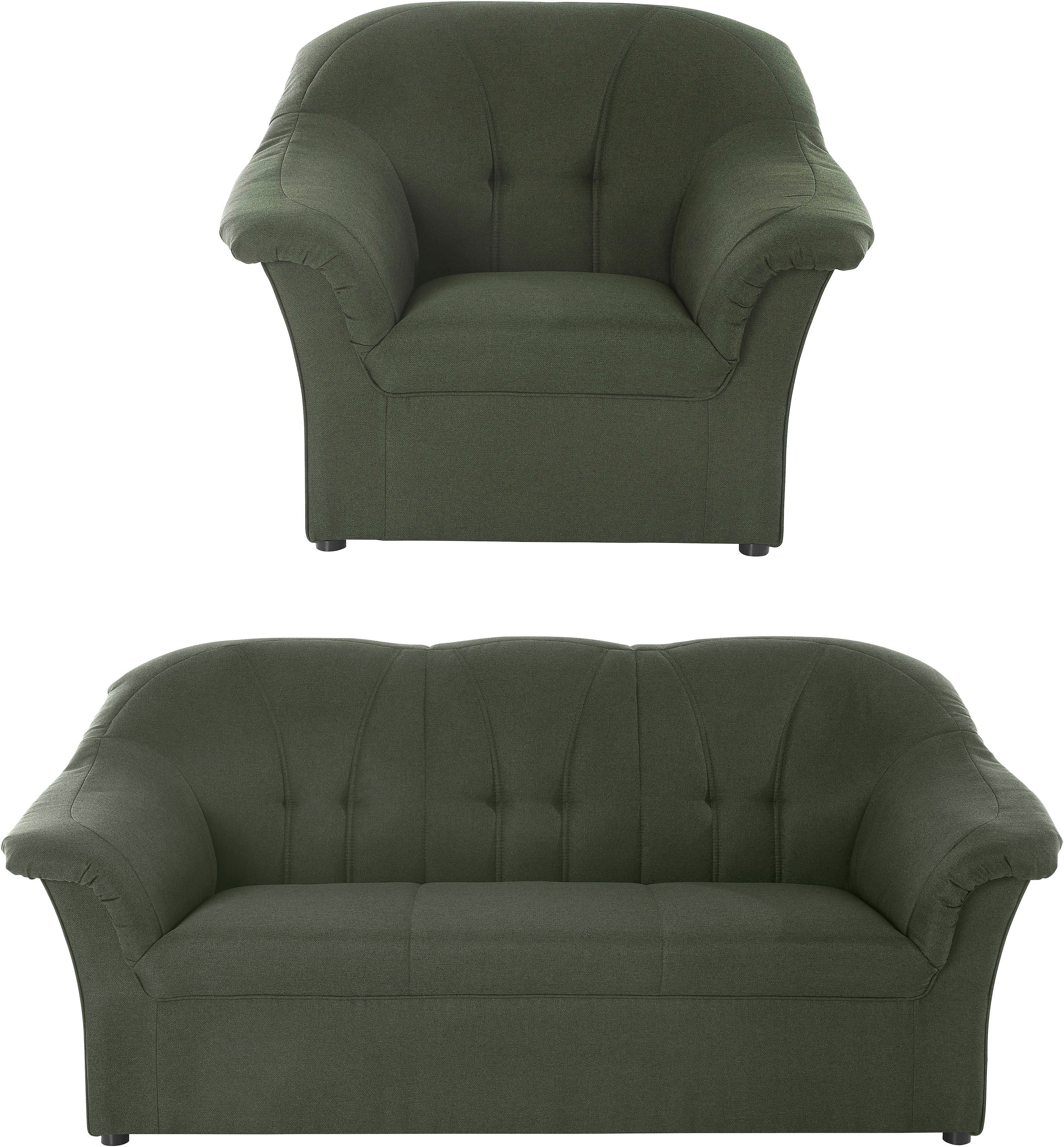 Wissenswertes | Gemütliche Polstergarnitur mit aufwendiger Rückensteppung und elegant geschwungenen Armlehnen. Aus FSC®-zertifiziertem Holzwerkstoff. Bestehend aus: