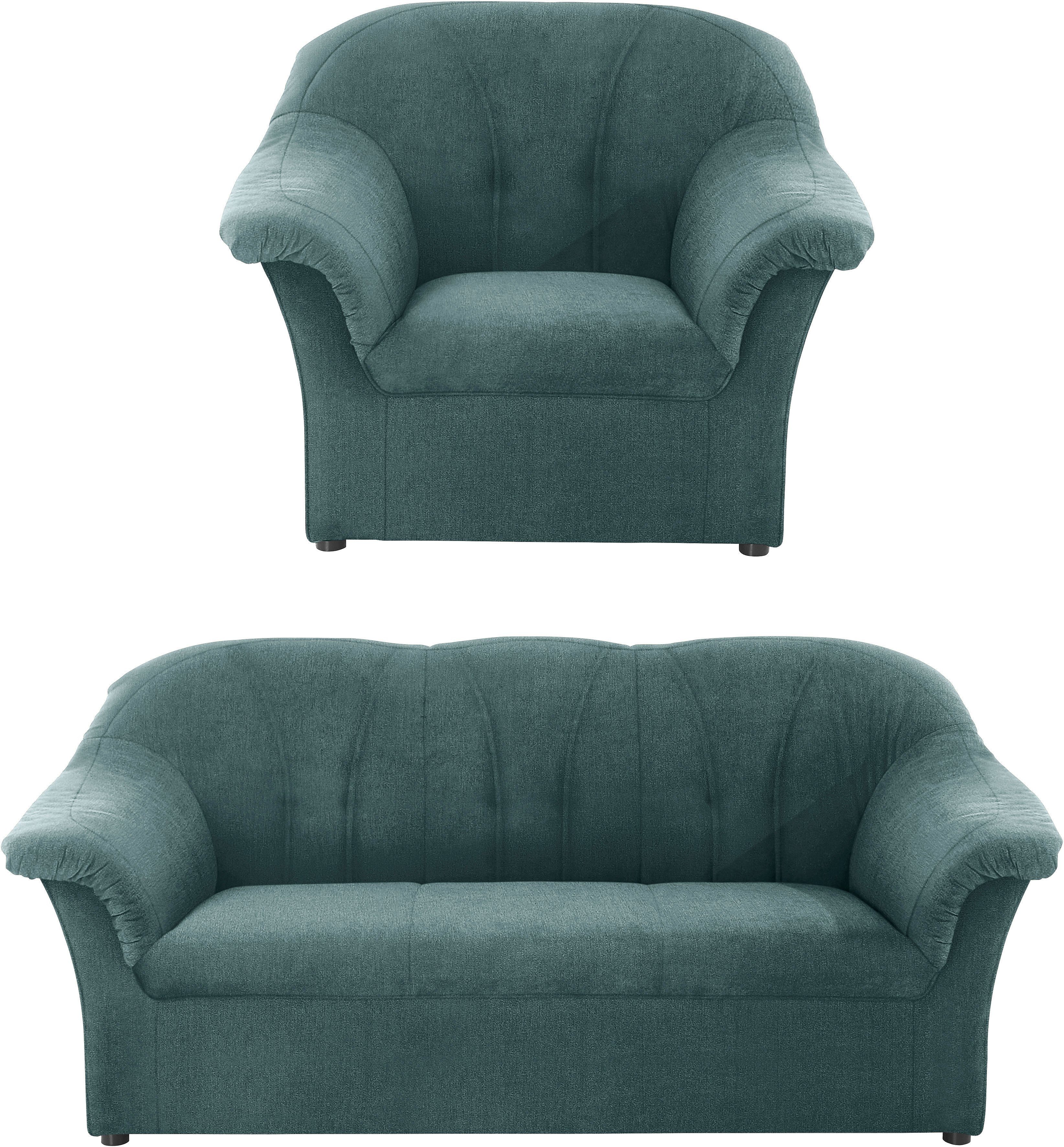 Gemütliche Polstermöbel mit aufwendiger Rückensteppung und elegant geschwungenen Armlehnen. Erstklassiger Sitzkomfort durch die Wellenunterfederung und der atmungsaktiven Polyätherschaum-Polsterung. Stabiles Holzuntergestell. Frei im Raum stellbar. Elegante Detailverarbeitung mit Doppelnähten an Sitz, Rücken und Korpus.. Ca.-Maße: Sessel (B/T/H): 105/82/82 cm, Sitztiefe/-höhe 50/40 cm. Breite Sitzfläche: 48 cm. Gesamtbreite: 105 cm. 3-Sitzer (B/T/H): 185/82/82 cm, Sitztiefe/-höhe 50/40 cm. Breite Sitzfläche: 128 cm. Gesamtbreite: 185 cm. Höhe Rückenlehne: 42 cm. Höhe Füße: je 2,5 cm. Bitte beachten Sie, dass Lederbezüge mehr Nähte aufweisen als Stoffbezüge. |