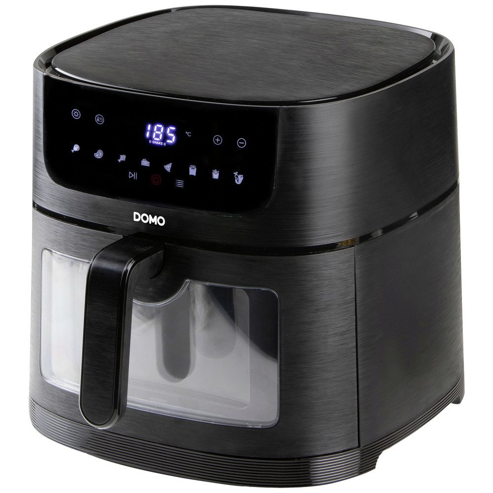 Entdecken Sie den DOMO Deli-freyer XXL DO543FR mit 8 l besonders großem Fassungsvermögen und 1800 W Leistung. Mit der Heißluftfritteuse können Sie im Handumdrehen Snacks, Pommes, Quiche oder sogar Gebäck für die ganze Familie zubereiten. Die Fritteuse mit Frittierrost ist für das Frittieren von bis zu 2 kg Pommes frites geeignet. Durch das Sichtfenster verfolgen Sie den Fortschritt. Zudem erinnert das Gerät Sie an das Aufschütteln der Speisen. Der Deli-freyer verfügt über ein digitales Display mit Touch-Bedienung und 8 vorprogrammierten Programmen. Sie können die Temperatur auch ganz einfach selbst zwischen 80° und 220 °C einstellen