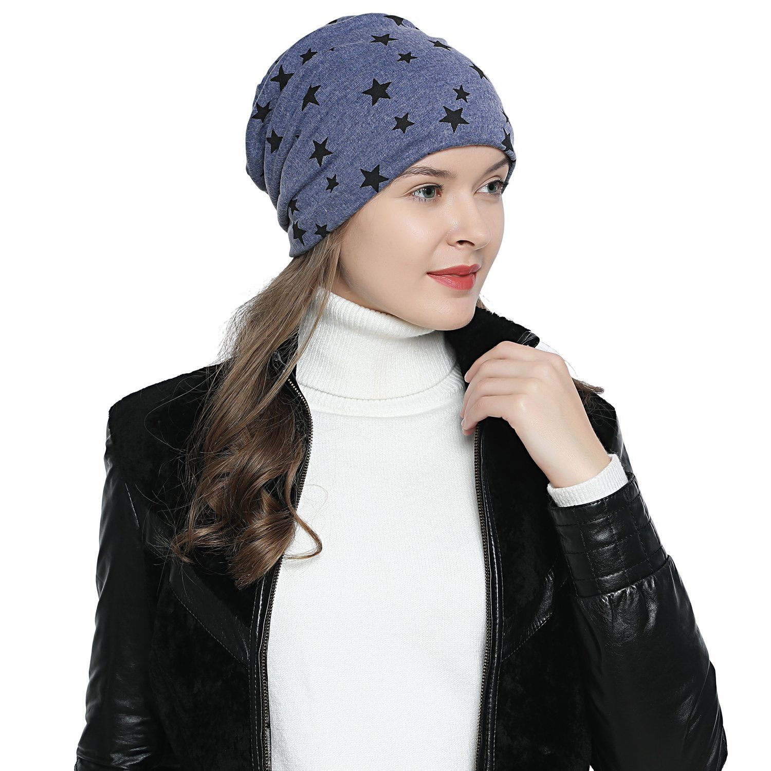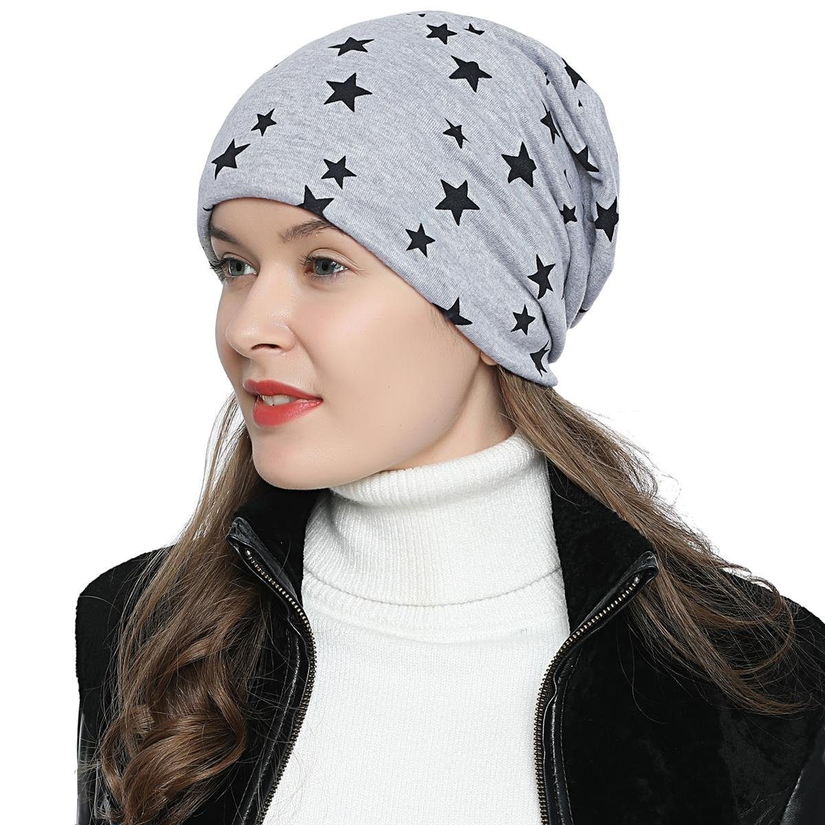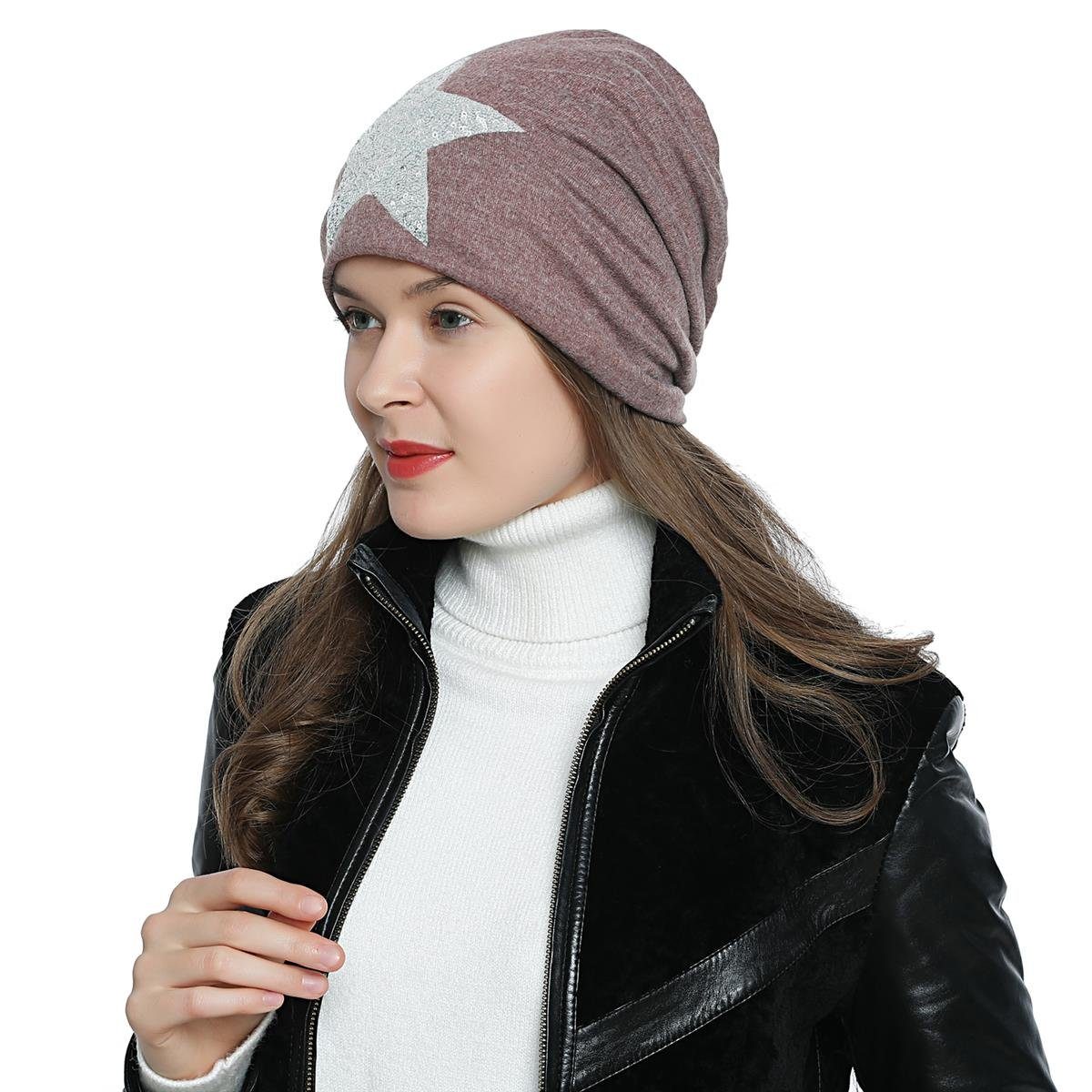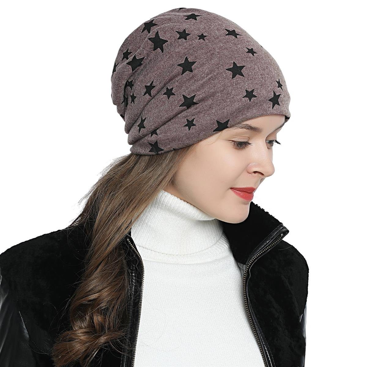 DonDon Damen Slouch-Beanie für den Winter mit schönem Sternemuster
