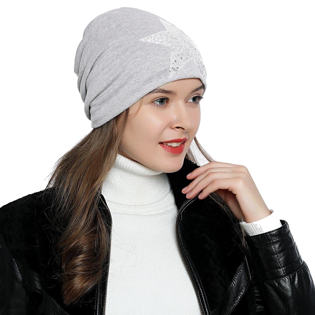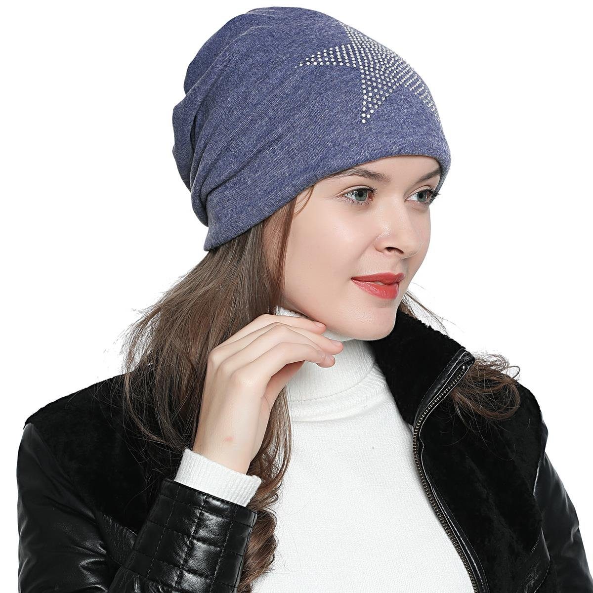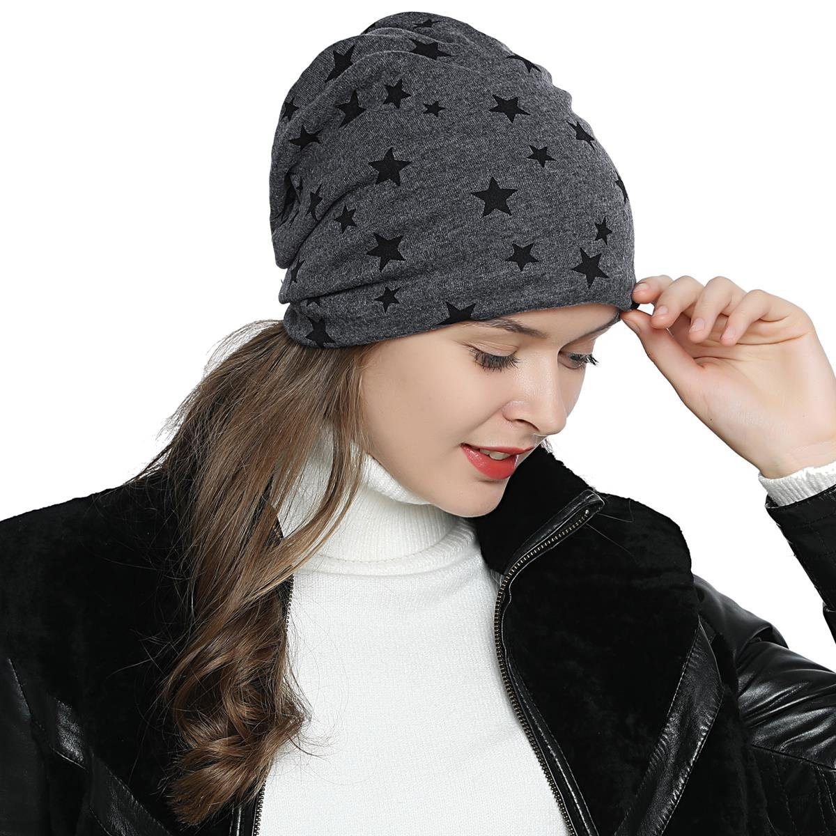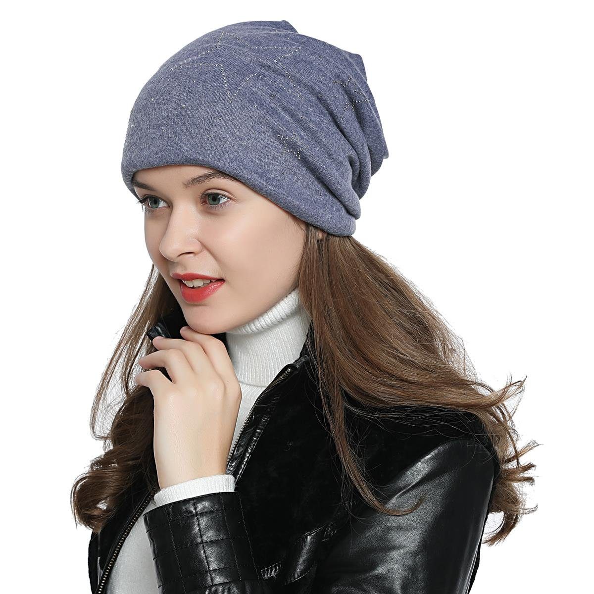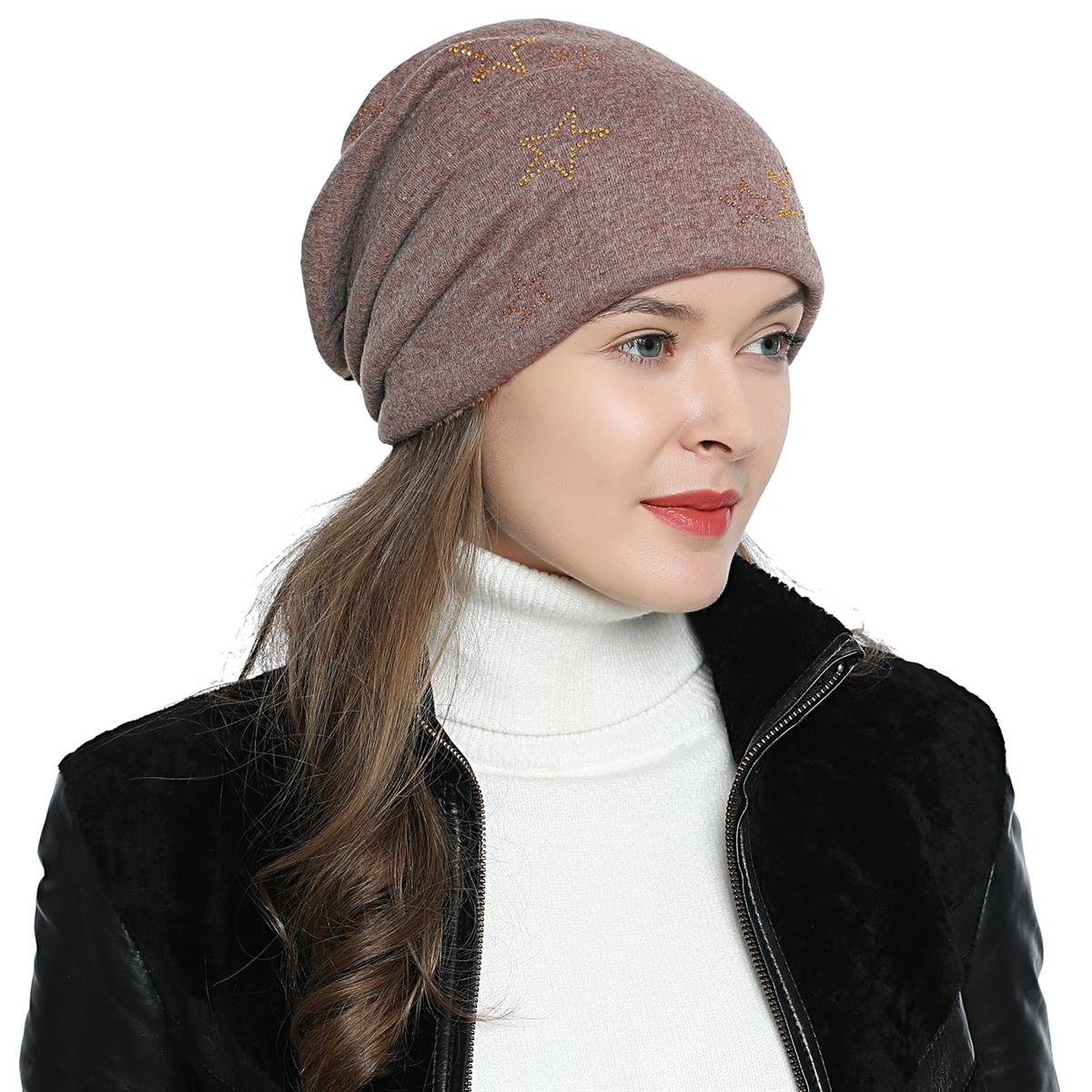 DonDon Damen Slouch-Beanie für den Winter mit schönem Sternemuster