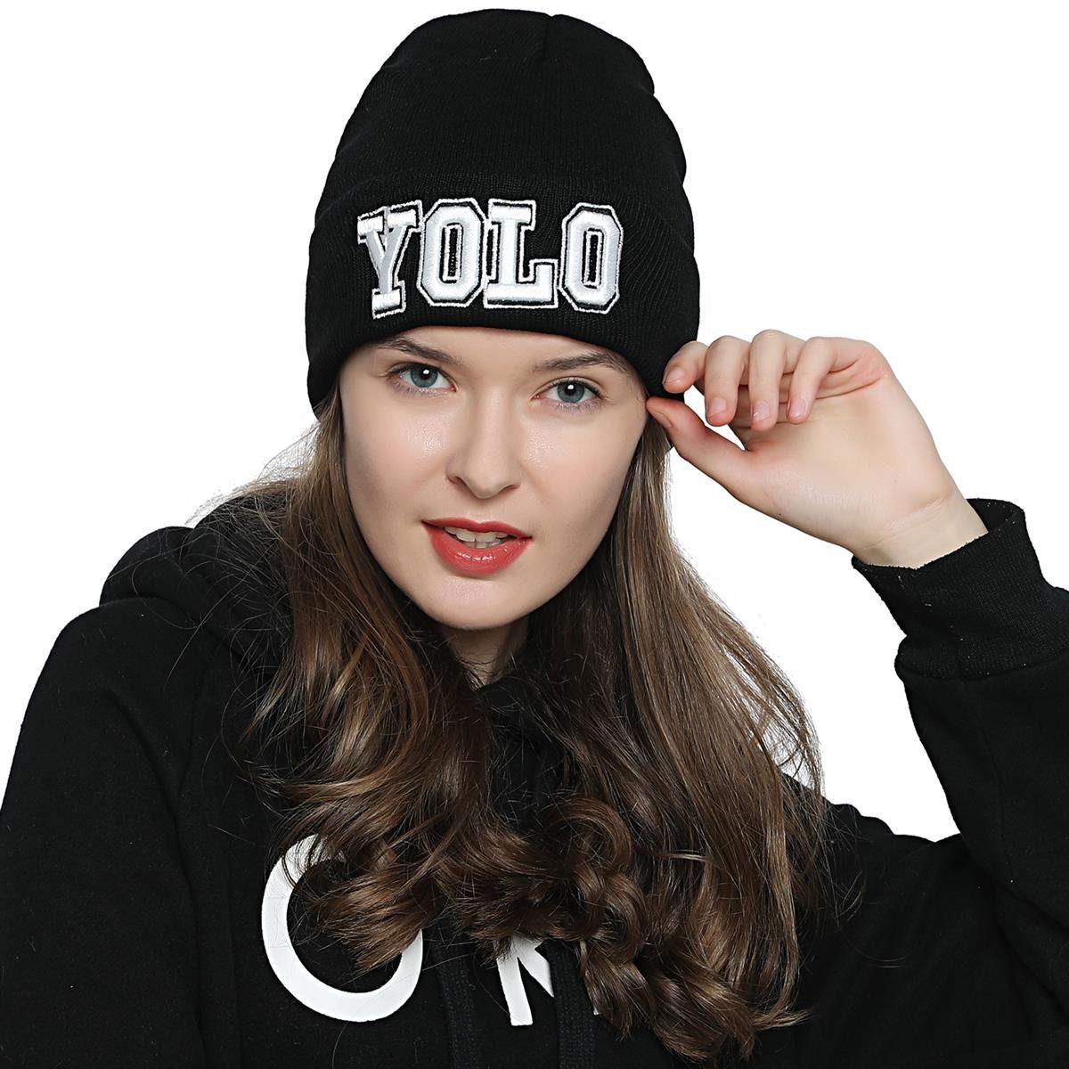 Besondere Merkmale | Wintermütze, mit coolem Statement-Print, Strickmütze mit Krempe |