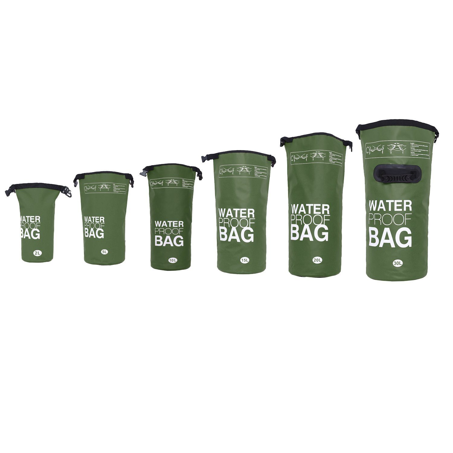 Die Drybags sind in den Größen 2 Liter, 5 Liter, 10 Liter, 15 Liter, 20 Liter und 30 Liter sowie in verschiedenen Farben erhältlich.