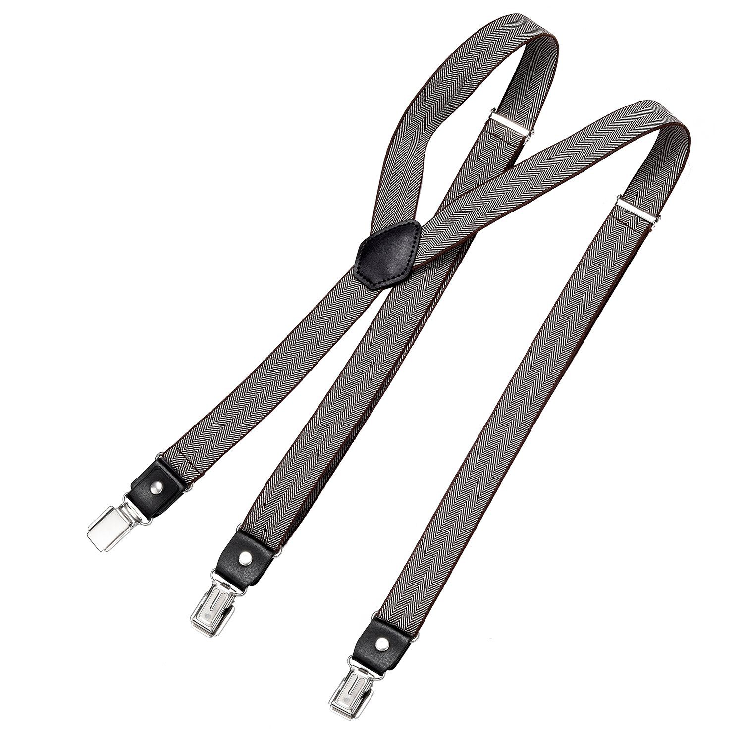 Die 2,5 cm schmalen Hosenträger liegen wieder im Trend. Das funktionelle Herren Accessoire begeistert im Alltag und zu festlichen Anlässen mit modischem Charme. Dieses hochwertig verarbeitete Modell ist aus 85 Prozent Polyester und einem hohen Elasthan Anteil von 15 Prozent gefertigt. Die Faser Elasthan sorgt für die flexible Dehnbarkeit der Hosenträger, die für eine Herren Körpergröße bis zu 1,95 Meter passend sind. Mit wenigen Handgriffen sind die elastischen Hosenträger auf den Oberkörper abgestimmt. Dieses schöne Herren Accessoire ist bis ins kleinste Detail liebevoll mit der Hand gefertigt.