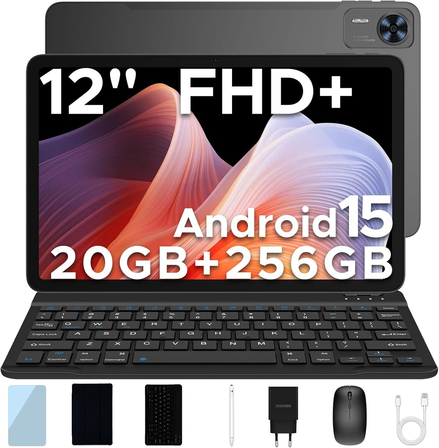 Android 15 Tablet 12 Zoll – 2025 Neues Tablet mit Tastatur, 20 GB + 256 GB/2 TB Tablet mit SIM Card Slot, 4G LTE, 8800 mAh, 90 Hz Octa-Core Gaming Tablet, Tablet mit Stift/Maus/Hülle