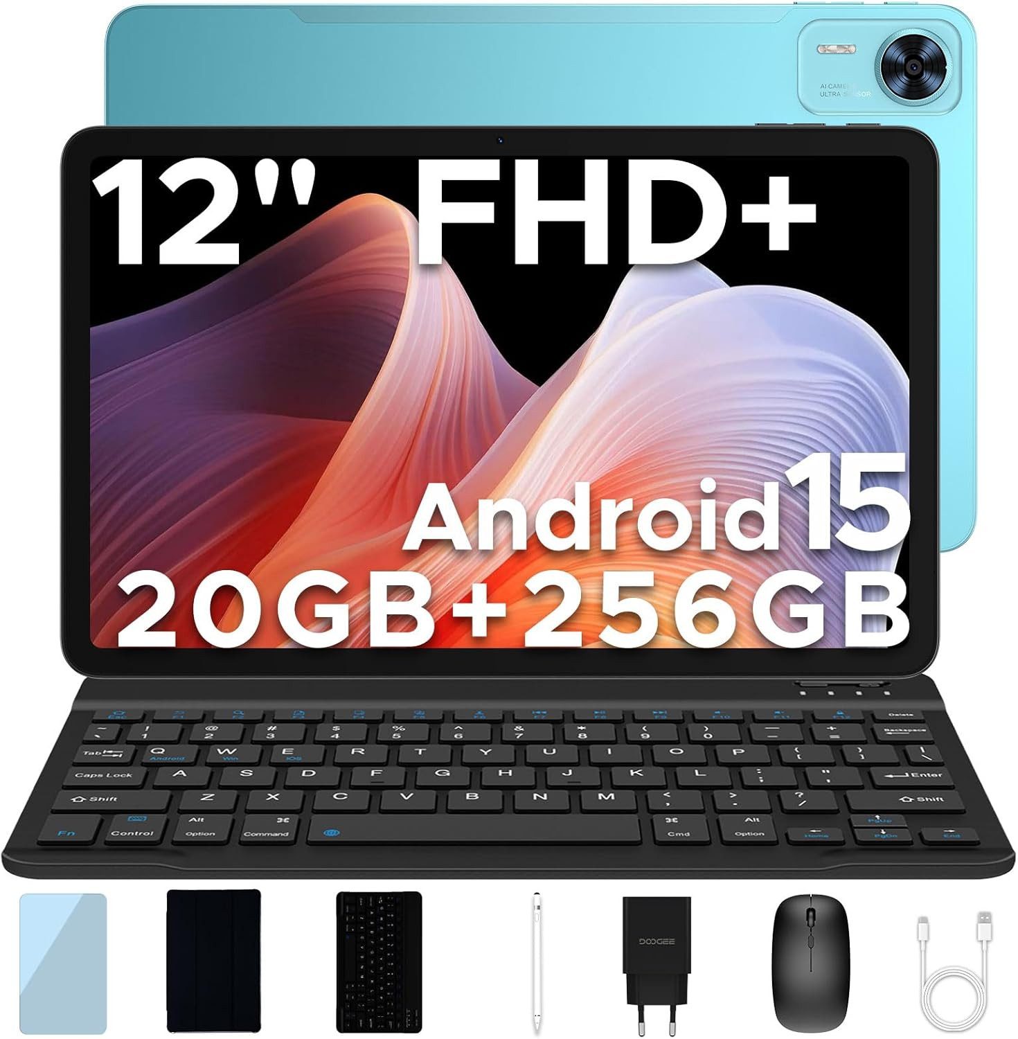 Android 15 Tablet 12 Zoll – 2025 Neues Tablet mit Tastatur, 20 GB + 256 GB/2 TB Tablet mit SIM Card Slot, 4G LTE, 8800 mAh, 90 Hz Octa-Core Gaming Tablet, Tablet mit Stift/Maus/Hülle