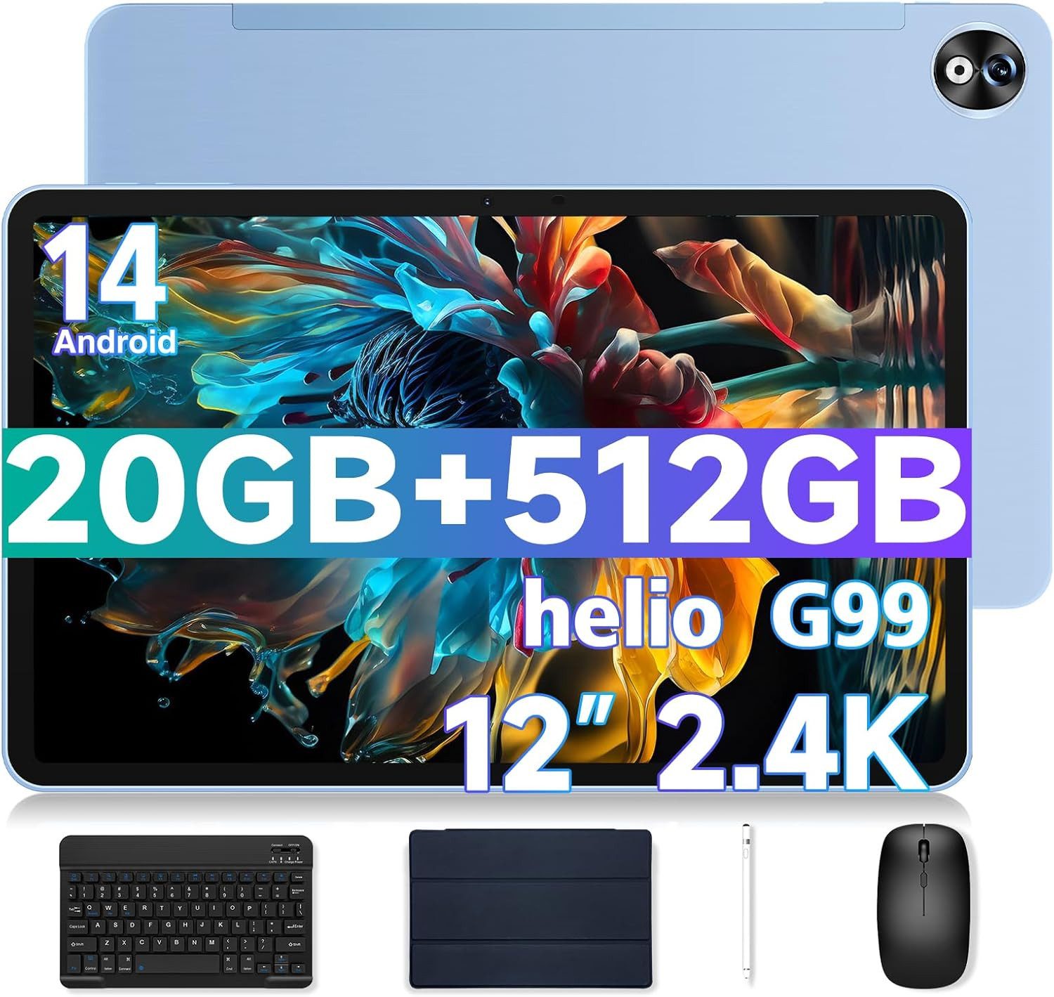 Tablet mit Tastatur, 20GB RAM +512GB ROM(2TB TF) Tablet PC,Tablet 12 Zoll Helio G99 Gaming Tablet,10800mAh Akku Android 14 Tablet LTE, 2.4K Android Tablet mit Stift 16MP 4G Dual SIM