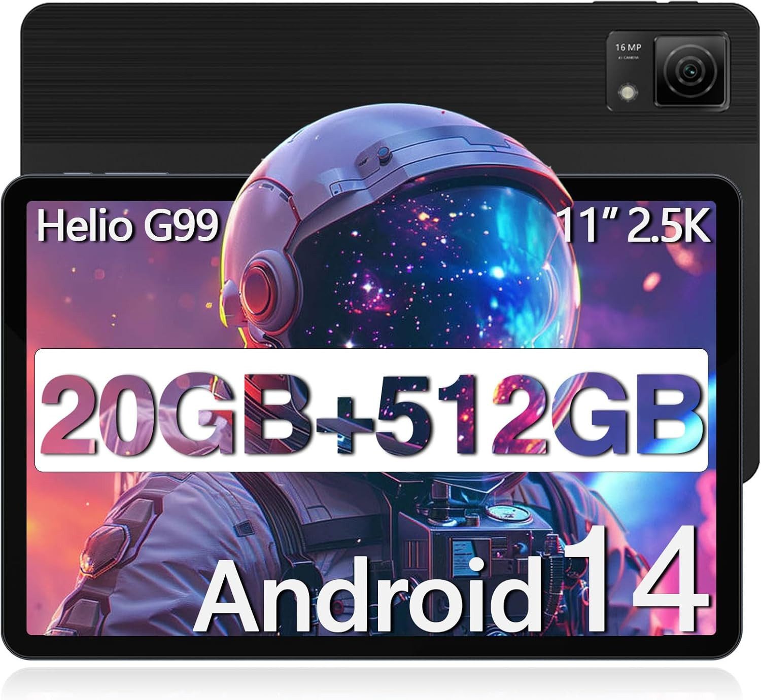 Tablet 11 Zoll, 20GB RAM+512GB ROM/2TB TF, Tablet Android 14, Helio G99 Octa-Core Gaming Tablet, 2,5K Display, Dual 4G SIM Tablet PC, 5G WiFi/8580mAh/18W/16MP/Face ID/GMS/GPS/Tablet Android