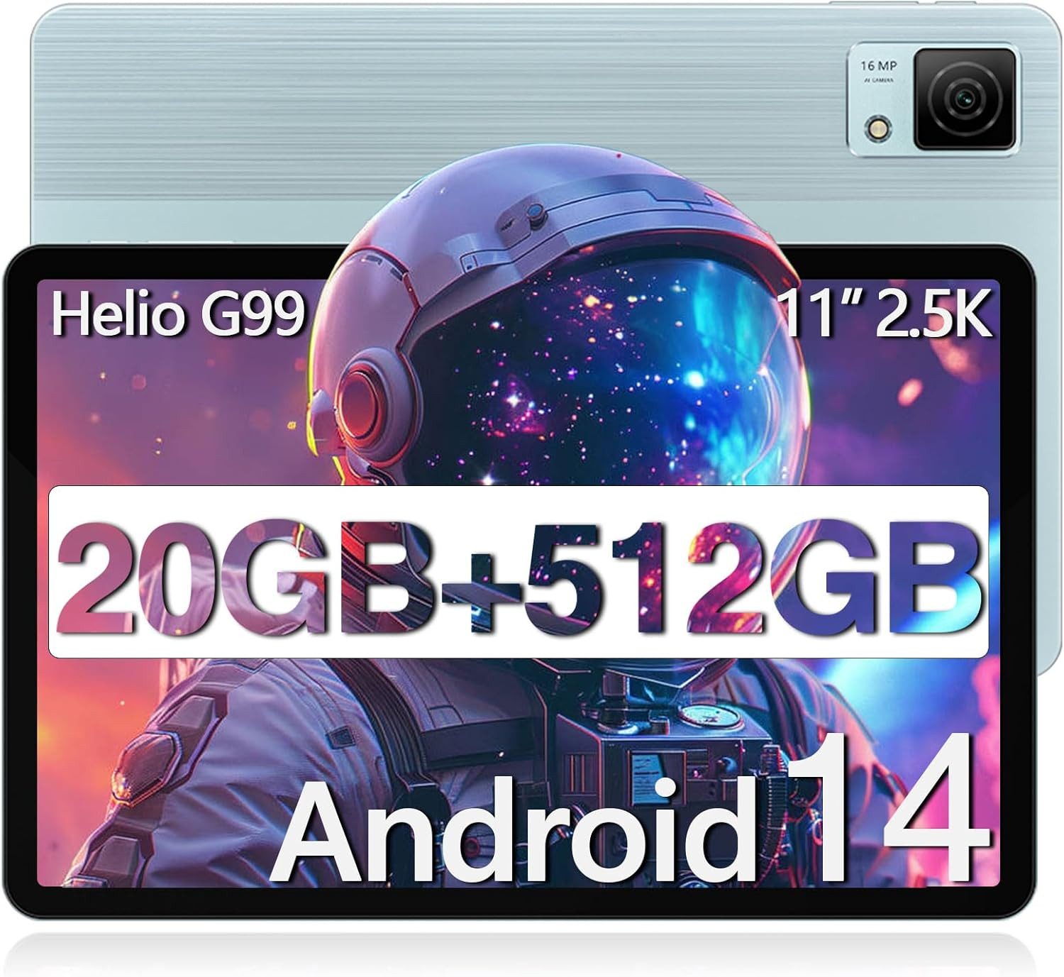 Tablet 11 Zoll, 20GB RAM+512GB ROM/2TB TF, Tablet Android 14, Helio G99 Octa-Core Gaming Tablet, 2,5K Display, Dual 4G SIM Tablet PC, 5G WiFi/8580mAh/18W/16MP/Face ID/GMS/GPS/Tablet Android
