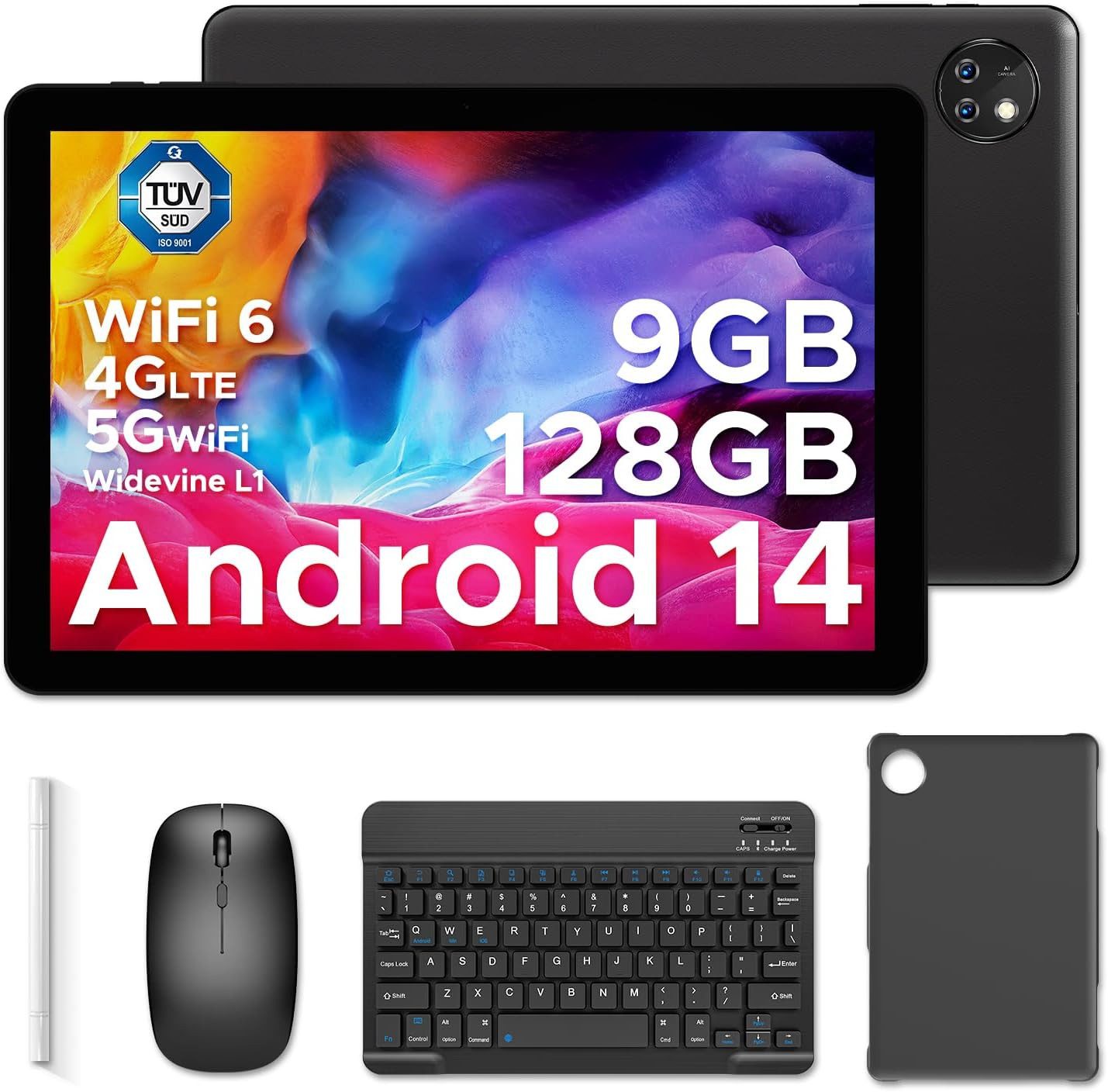 Tablet 10 Zoll, Android 14 Tablet mit Tastatur, 9 GB RAM+128 GB ROM/1 TB Erweiterung, HD Touchscreen, Tablet PC 8000 mAh | Widevine L1 | WiFi | GPS | BT 5.0 | LTE | OTG, Tablet mit Stift