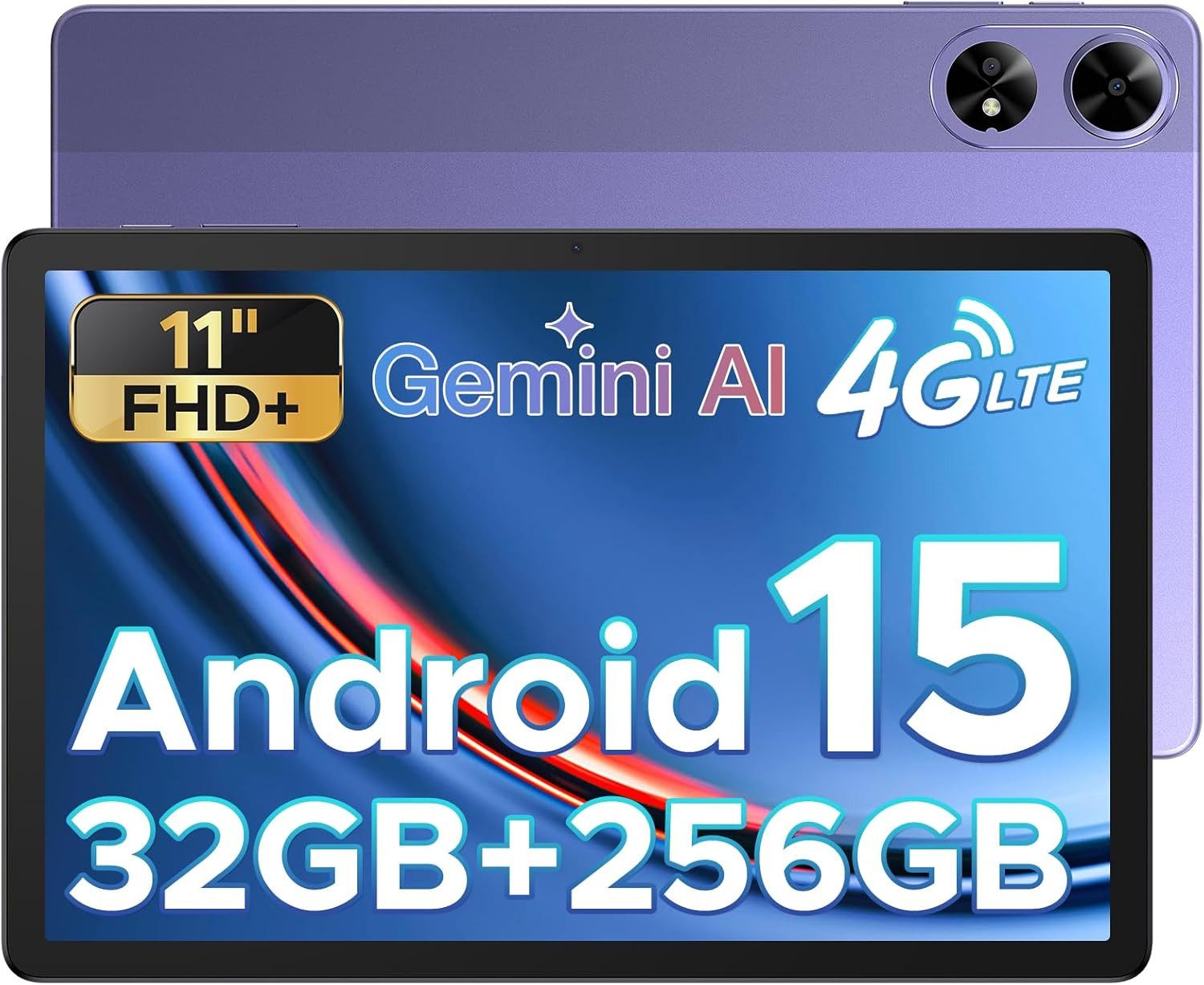2025 – Neuestes Android 15 AI Tablet 11 Zoll, FHD+, Tablet mit SIM Card Slot, 32 GB RAM + 256 GB ROM/2 TB, 8000mAh, Octa-Core T7280, 4G LTE, Widevine L1, Netflix, Bluetooth 5.0, GPS