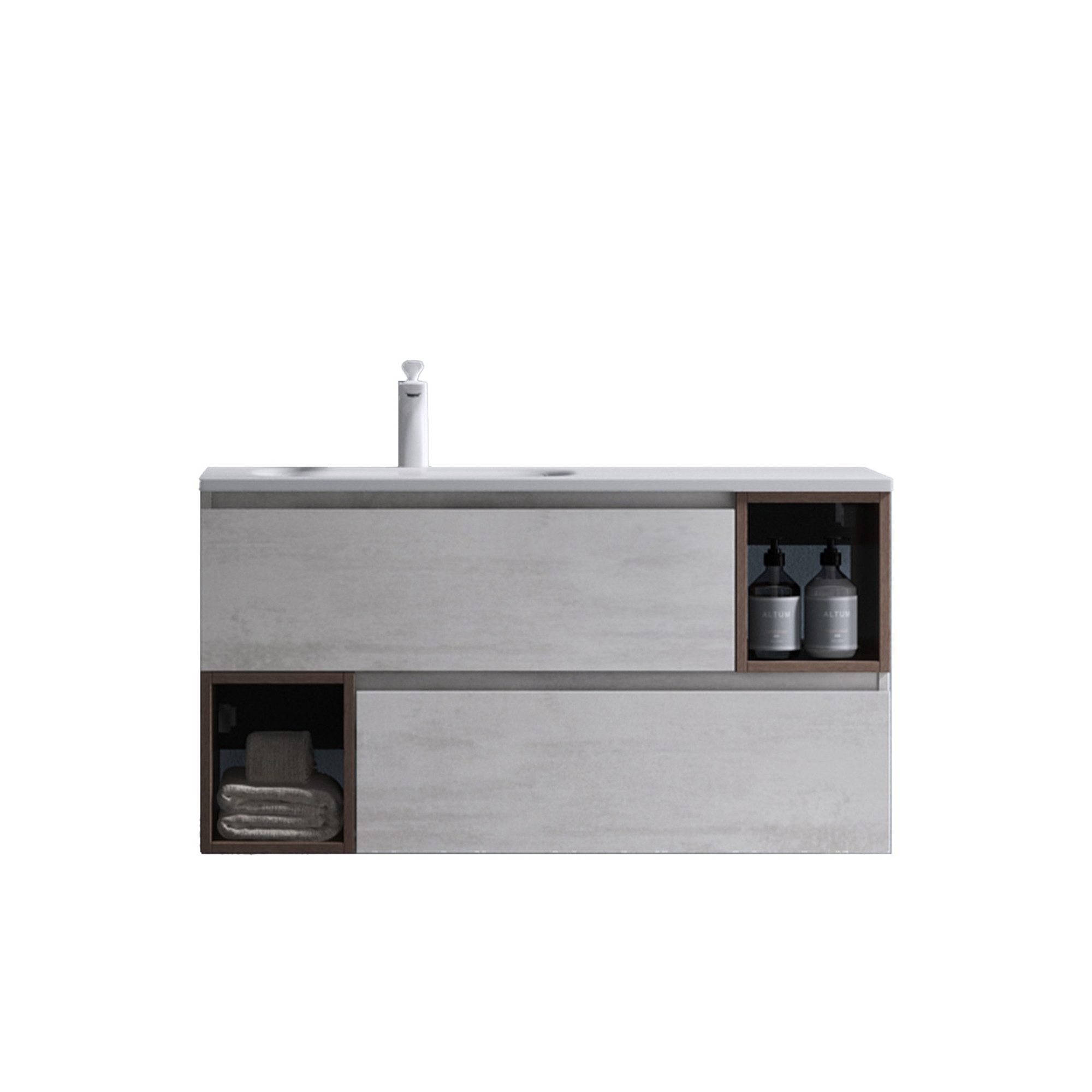 Der Unterschrank verfügt über zwei Auszüge, die mit einer praktischen Soft-Close Funktion ausgestattet sind und viel Stauraum für Ihre Badutensilien bietet.