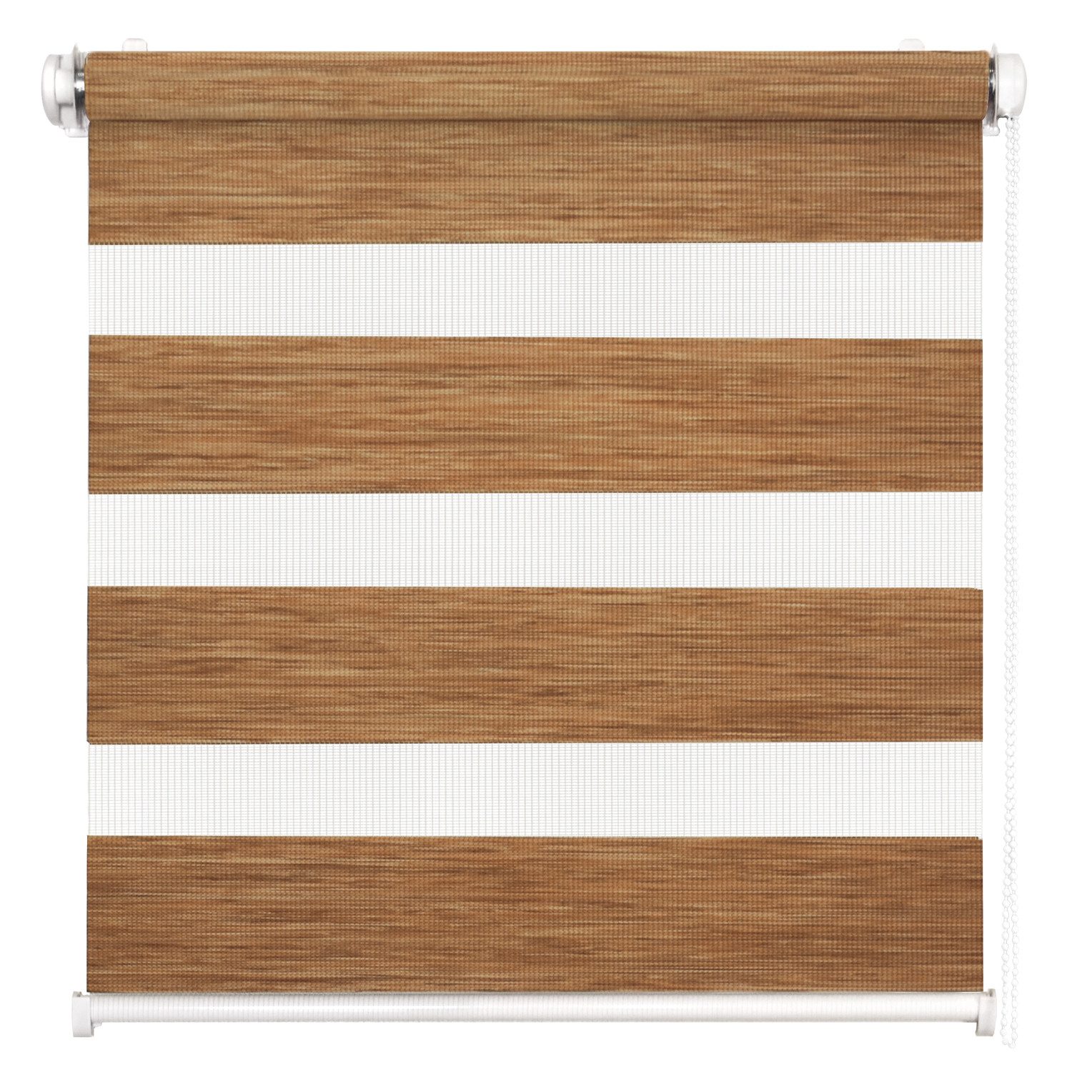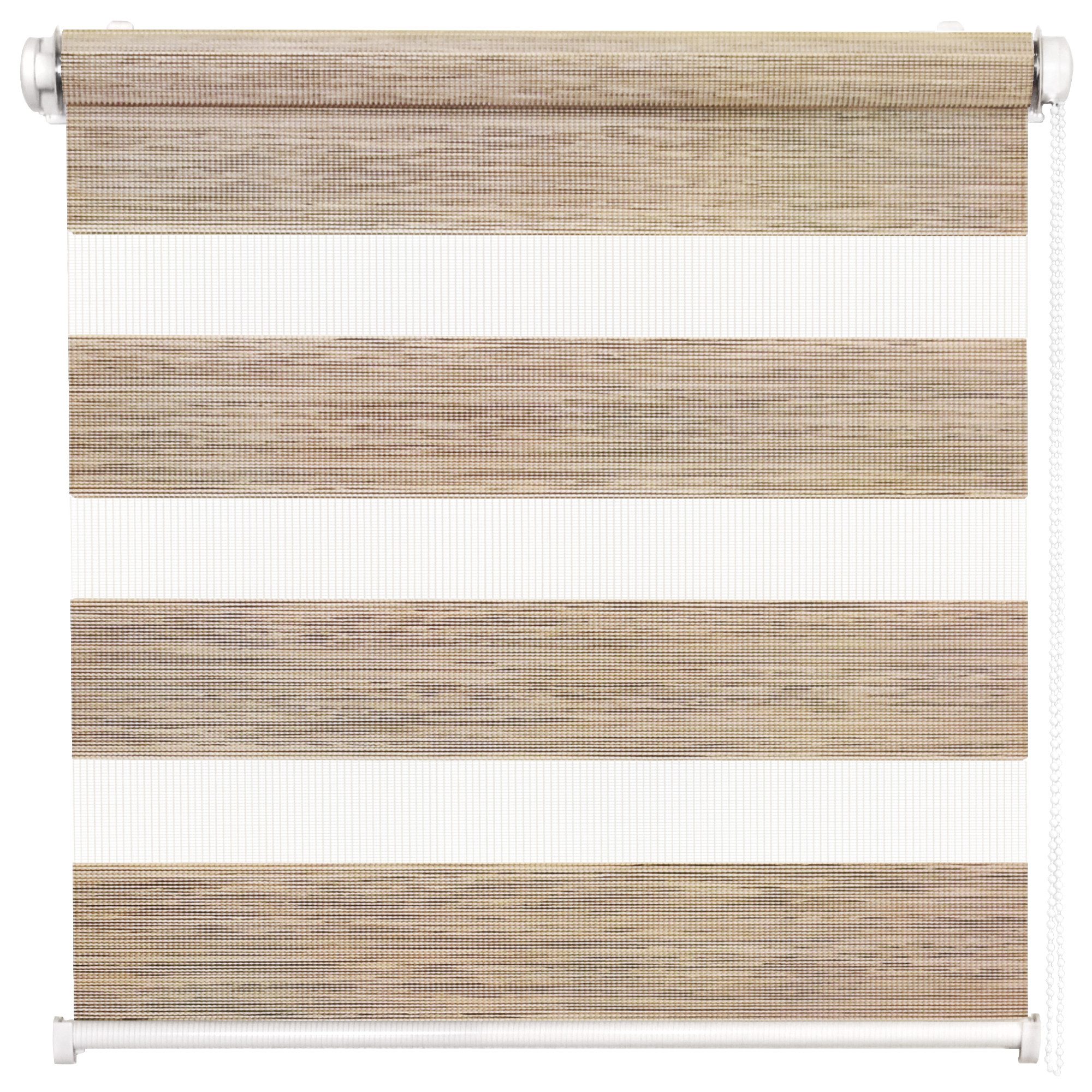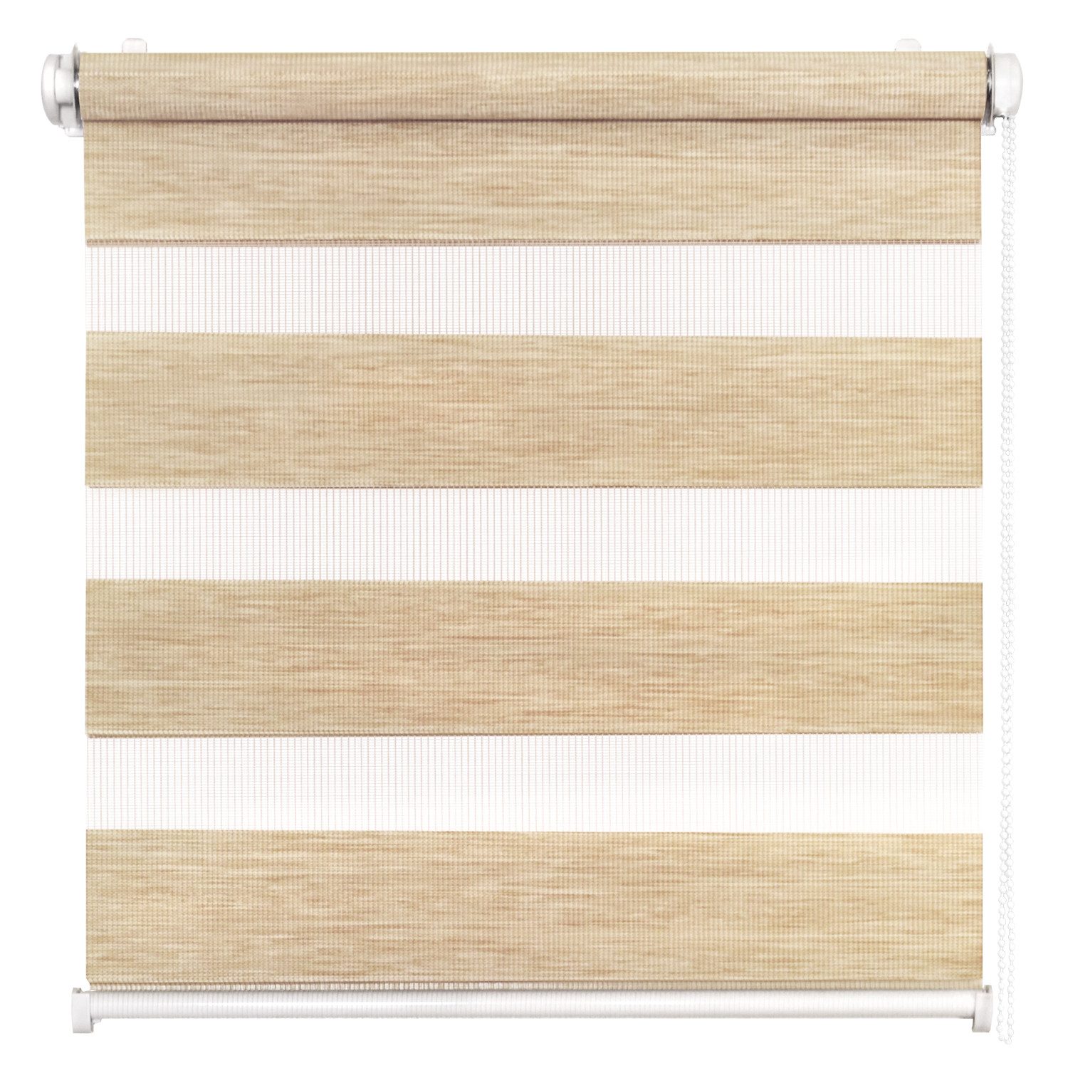 Die DomDeco Doppelrollos in Natur-Farben Optik bestechen durch höchste Stoffqualität und solide Verarbeitung. Inspiriert durch die Farben und Muster natürlicher Elemente wie Holz und Stein haben wir eine kleine Kollektion von Doppelrollos geschaffen die mit allen Einrichtungsstilen, egal ob klassisch oder Modern, kombiniert werden kann. Die DomDeco Doppelrollos werden selbstverständlich vormontiert geliefert und sind in wenigen Augenblicken an Ihren Fenstern befestigt. Das DomDeco Doppelrollo "Tag und Nacht" Natural ist eine besonders bequeme und clevere Fensterdekoration, die sich dank der innovativen Klemmfix-Halterung ganz ohne Bohren am Fenster befestigen lässt. Mit dem Kettenzug stellen Sie den Lichteinfall so wie gewünscht ein und erzielen dabei durch die versetzten Stoffsegmente eine malerische Lichtstimmung. Auch an das Verhalten beim Kippen des Fensters wurde gedacht: Dank der Seitenführung bleibt das Rollo dabei nämlich stets stabil. HINWEIS: Beachten Sie bitte, dass die Stoffbreite etwa 4 cm SCHMALER ist als die angegebene Gesamtbreite. Hergestellt in der EU. Warnhinweis: Kleine Kinder können sich in den Schlingen von Schnüren, Ketten oder Gurten zum Ziehen sowie in Schnüren zur Betätigung von Fensterabdeckungen strangulieren. Schnüre sind aus der Reichweite von Kindern zu halten, um Strangulierung und Verwicklung zu vermeiden. Sie können sich ebenfalls um den Hals wickeln. Betten, Kinderbetten und Möbel sind entfernt von Schnüren für Fensterabdeckungen aufzustellen. Binden Sie Schnüre nicht zusammen. Stellen Sie sicher, dass sich Schnüre nicht verdrehen und eine Schlinge bilden.