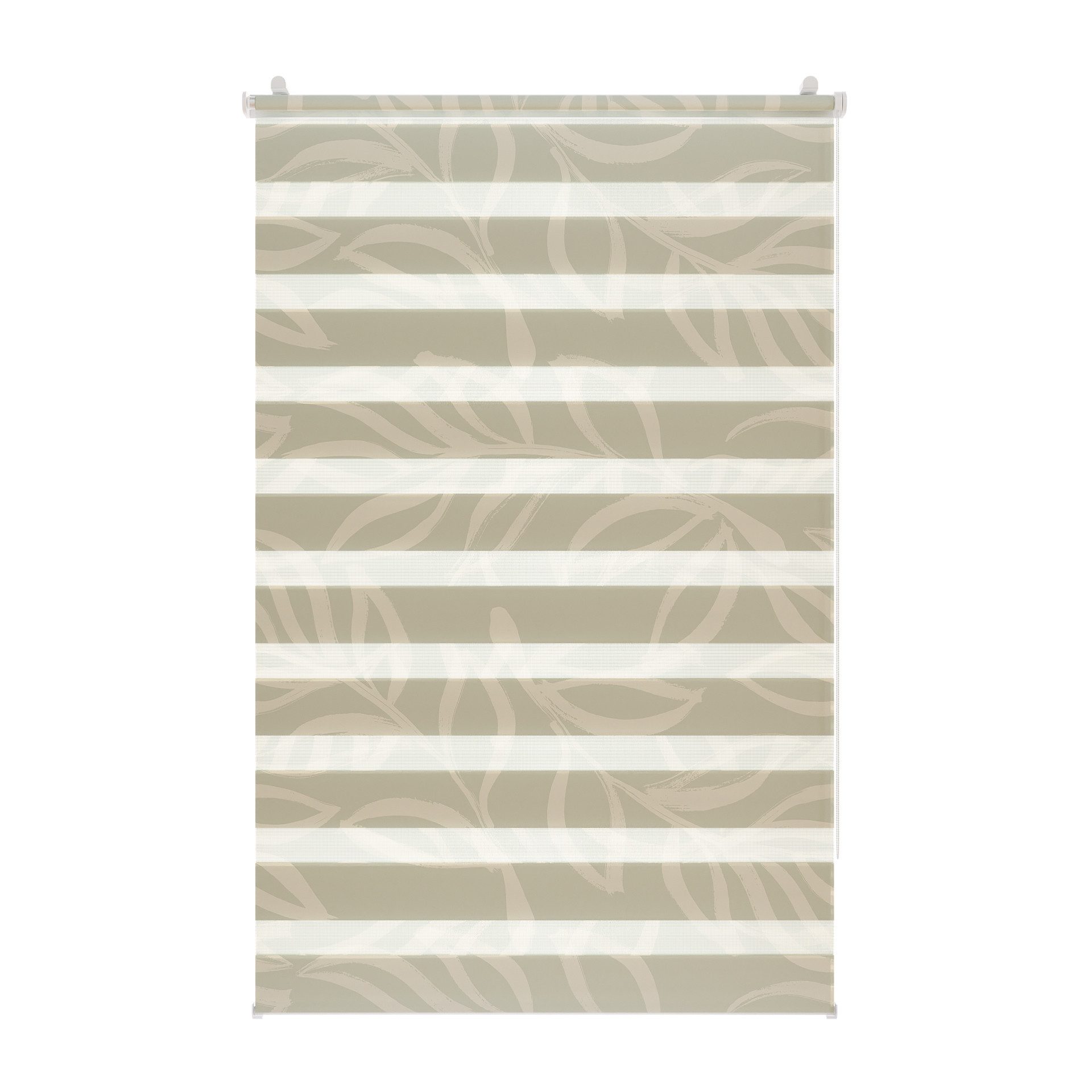 Das Motiv Botanica Sabio wurde von Julia Schumacher entworfen. Julia ist Textildesignerin aus Leidenschaft und hat eine Vorliebe für grafische, abstrakte und große Designs, die meist Inspirationen aus der Natur wiederspiegeln. Das Motiv Botanica Sabio bewirkt mit der Farbgebung in Salbei und Beige eine ruhige und entspannende Ausstrahlung. Eine Besonderheit bei diesem Doppelrollo mit Motiv ist der hochwertige Digitaldruck, der das Motiv fotorealistisch und damit besonders edel wirken lässt. Das Duo Rollo wird in Deutschland gefertigt und bedruckt, was somit ein weiteres Qualitätsmerkmal ist. Das Klemmfix Duo Rollo ist einseitig bedruckt, allerdings ist das Motiv durch die doppelten Stoffbahnen von innen und außen am Fenster oder der Tür sichtbar. Das Duo Rollo ist ein innovatives Sonnenschutzsystem für Licht- und Sichtschutz und integriert die moderne Fensterdekoration mit hochwertigen Materialien. Durch die transparenten parallel gegeneinander laufenden Stoffbahnen kann das Licht ganz einfach und nach Bedarf reguliert werden. So entstehen wunderschöne Licht- und Schattenspiele. Die Position des Rollos am Fenster kann mithilfe des Kettenzugs punktgenau eingestellt werden. So gelangt entweder mehr Tageslicht durch die transparenten Stoffbahnen oder die blickdichten Streifen schützen vor neugierigen Blicken und starker Sonneneinstrahlung. Diese Funktion kann in jeder beliebigen Höhe genutzt werden, da sich der Stoff wie bei einem herkömmlichen Seitenzugrollo komplett auf- und abrollen lässt. Auch die Montage des Duo Rollos ist ein echtes Highlight. Diese erfolgt schnell, einfach und kinderleicht dank der im Lieferumfang enthaltenen verstellbaren Klemmträger. Diese werden zusammen mit der Montageschiene der Doppelrollos auf den Fensterflügel geklemmt. Mit der Klemmträgermontage muss weder gebohrt, noch geschraubt werden. Alternativ ist die Montage zum Schrauben an Wand, Decke oder Fensterlaibung möglich, die entsprechenden Clips sind im Lieferumfang enthalten (aber keine Schrauben und Dübel).