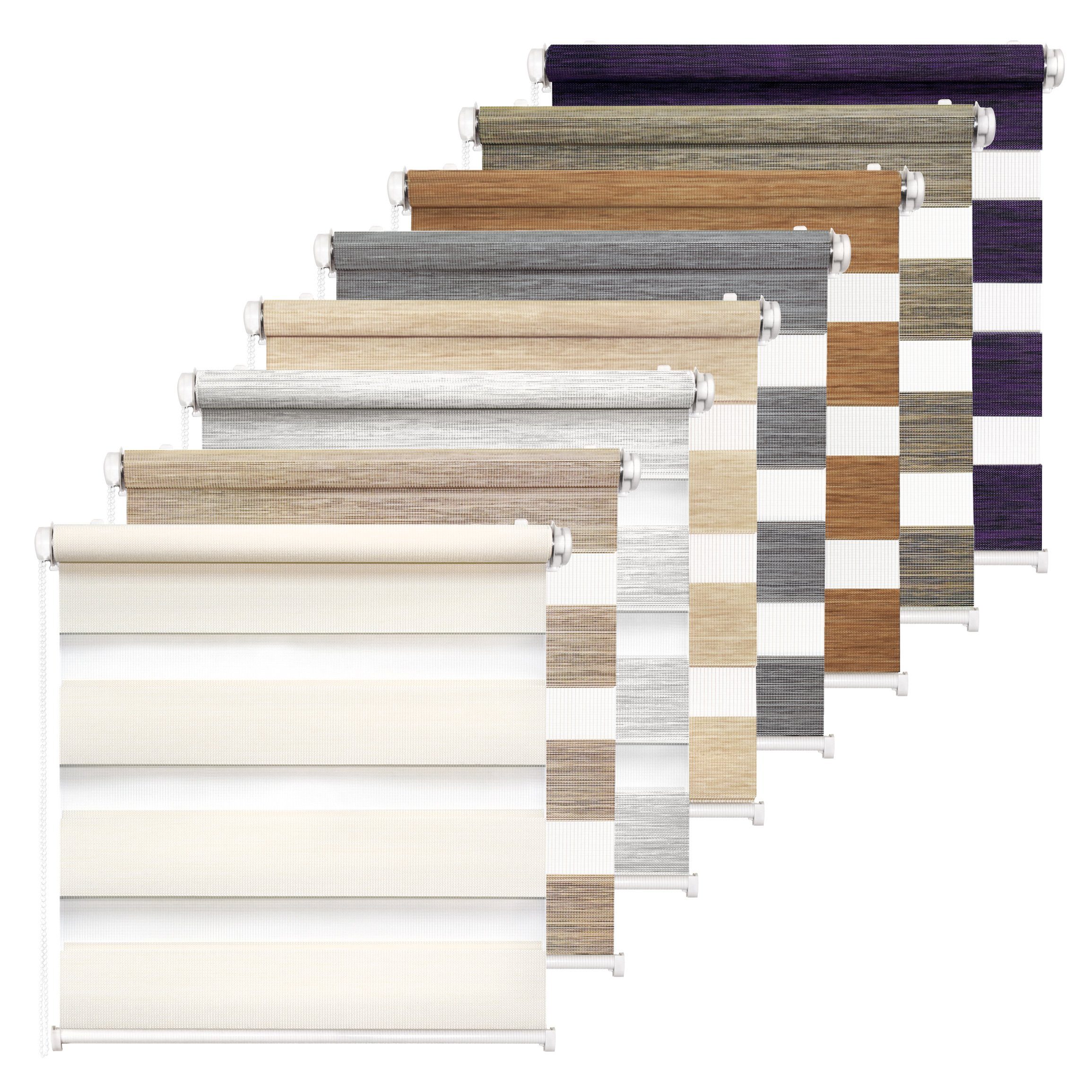 Das Rikmani Doppelrollo vereint modernes Design mit hoher Funktionalität und sorgt für stilvollen Sicht- und Sonnenschutz in jedem Raum. Dank der durchdachten Kombination aus transparenten und blickdichten Stoffstreifen lässt sich der Lichteinfall ganz flexibel regulieren – ideal für Wohnzimmer, Schlafzimmer, Küche oder Homeoffice. Durch den seitlichen Kettenzug, der je nach Wunsch links oder rechts montiert werden kann, verstellen Sie die Stoffbahnen stufenlos und erzeugen so eine angenehme Lichtstimmung. Das Rollo ist lichtdurchlässig, schützt aber zuverlässig vor neugierigen Blicken und ist somit blickdicht, ohne komplett zu verdunkeln. Die Klemmfix-Halterung ermöglicht eine Montage ohne Bohren, ganz einfach am Fensterrahmen – perfekt für Mietwohnungen oder empfindliche Fensterrahmen. Für zusätzliche Stabilität sorgt die mitgelieferte Seitenführung, die das Rollo auch bei gekipptem Fenster in Position hält. Dank der hochwertigen Materialien ist das Doppelrollo pflegeleicht: Leichte Verschmutzungen lassen sich einfach mit einem feuchten Tuch abwischen. Hinweis zur Breite: Bitte beachten Sie, dass die Bestellbreite ca. 4 cm breiter ist als die tatsächliche Stoffbreite.
