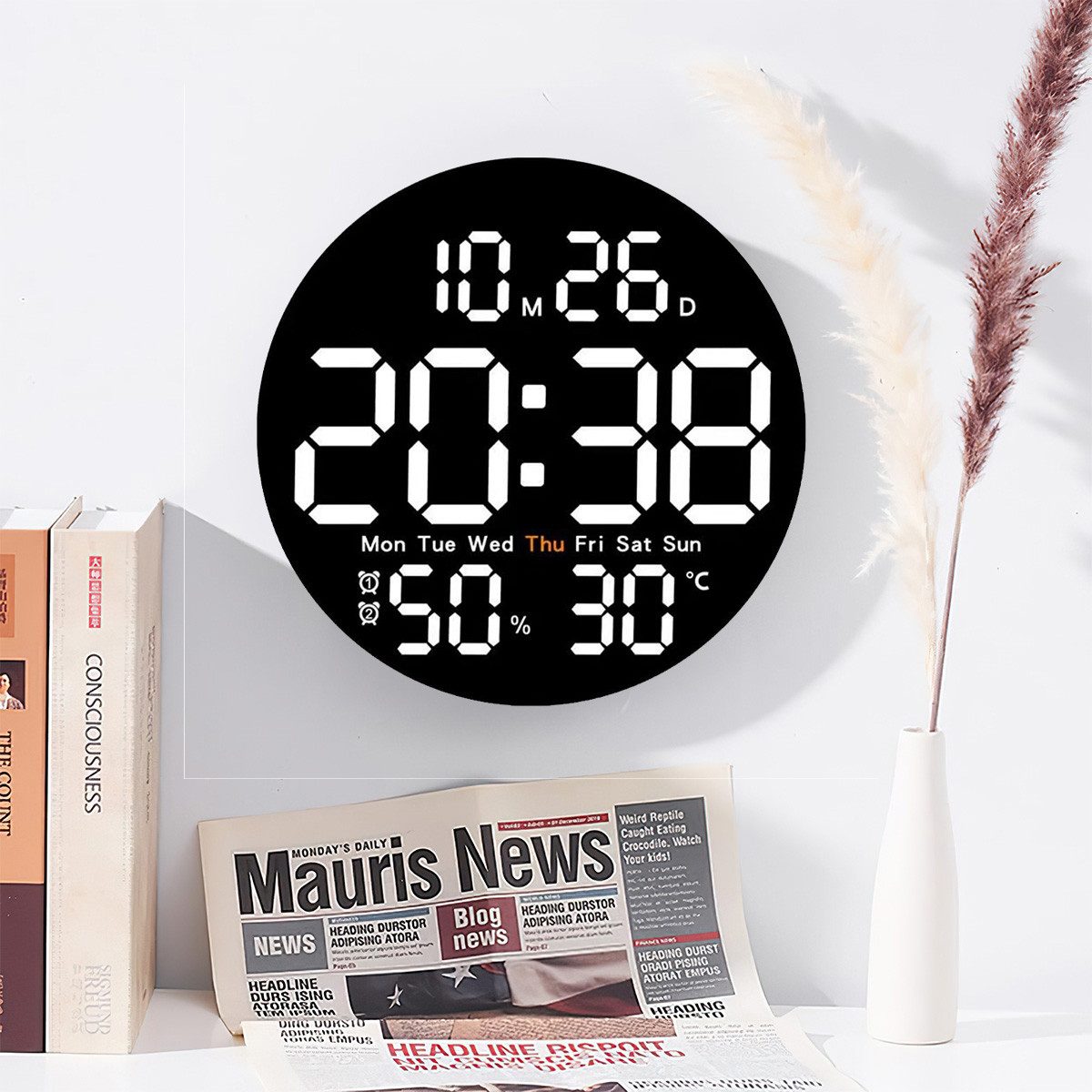 Diese moderne Wanduhr kombiniert stilvolles Design mit praktischen Funktionen. Ideal für Wohnräume, Büros, Küchen oder öffentliche Bereiche – mit großem LED-Display, einfacher Bedienung und vielseitigen Zusatzfunktionen.