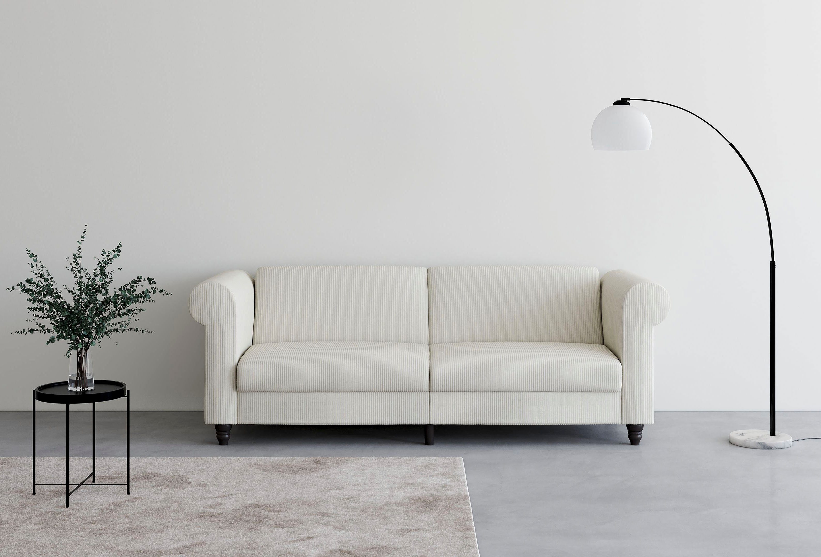 Durch die hochwertige Wellenunterfederung wird die Sitzfläche des 3-Sitzers »Felix II, Schlafsofa 236cm, (Liegefläche 108x190cm), Rückenlehne« von Dorel Home gut gefedert und bleibt dauerhaft elastisch. Zudem verfügt das Möbelstück über eine ausziehbare Liegefläche, sodass es sowohl als gemütliche Sitzgelegenheit für den Tag als auch als Gästebett genutzt werden kann. Die Couch ist manuell verstellbar, sodass du die Ausrichtung mit einer einfachen Bewegung anpassen kannst. Die maximale Belastbarkeit liegt bei einem Gewicht von 272 Kilogramm. Die schwarzen Füße aus Massivholz überzeugen mit der einzigartigen Optik.
