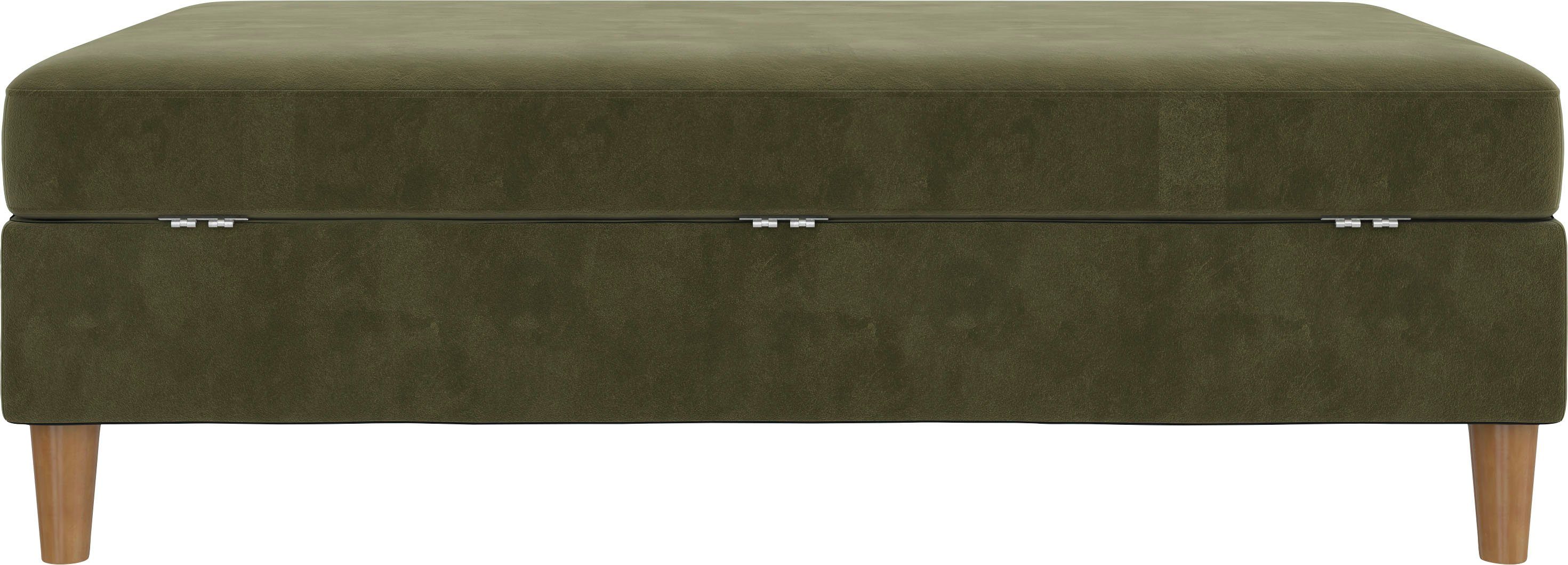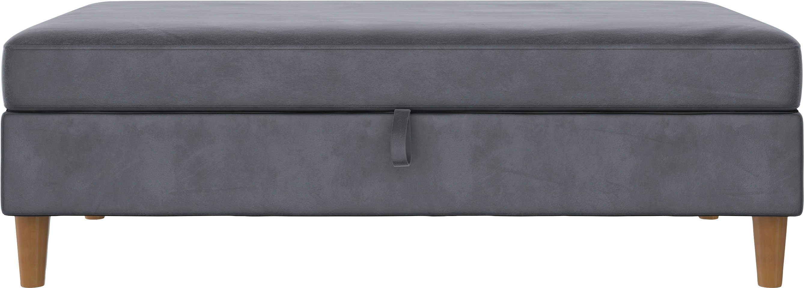 Ausgestattet mit einem geschlossenen Innenfach bietet dieser Stauraumhocker »Lilly« von Dorel Home zusätzlichen Stauraum, in dem du Kleinkram ordentlich und versteckt aufbewahren kannst. Die eichefarbenen Beine wurde aus Kunststoff gefertigt und sind daher temperatur- und formbeständig.