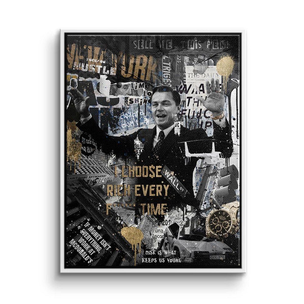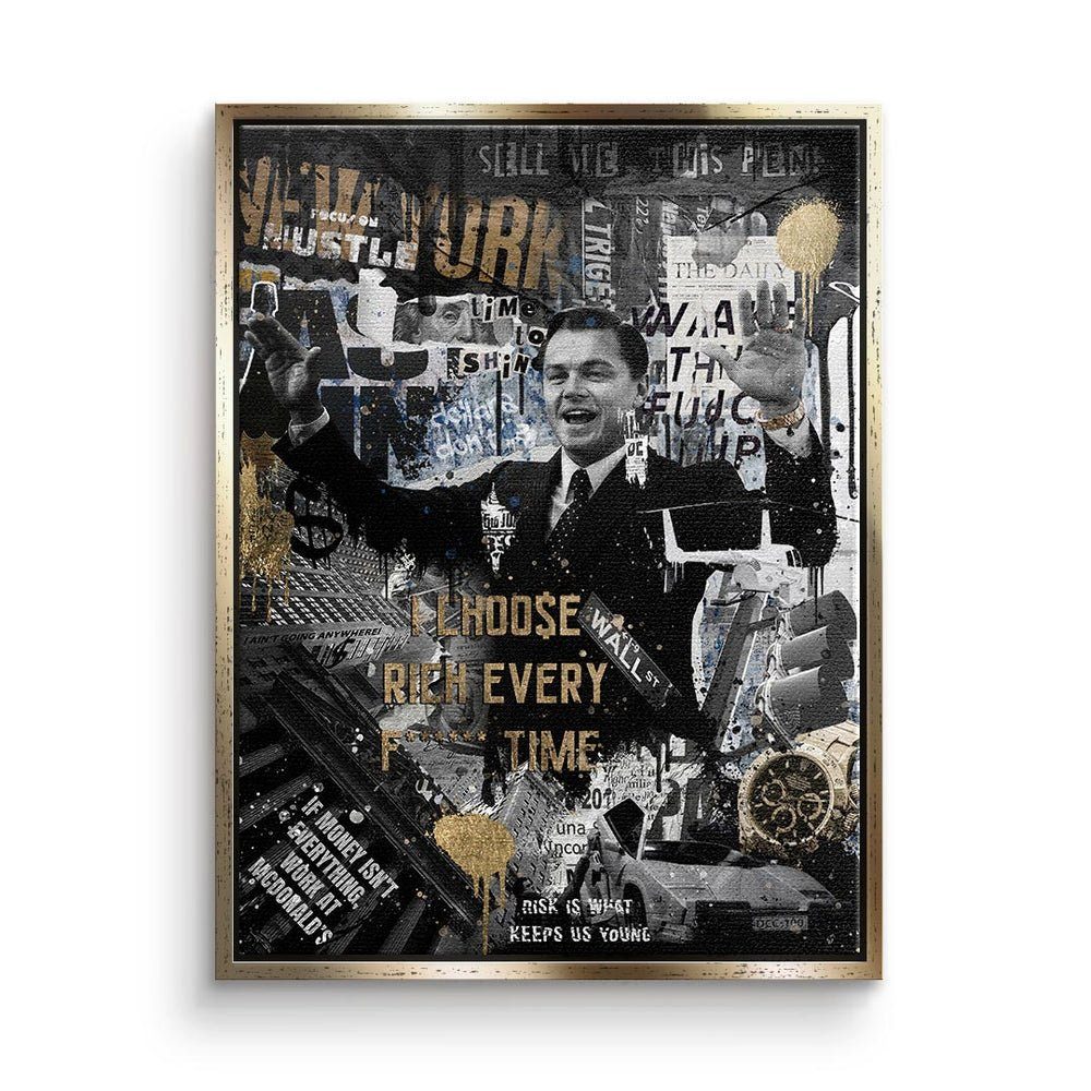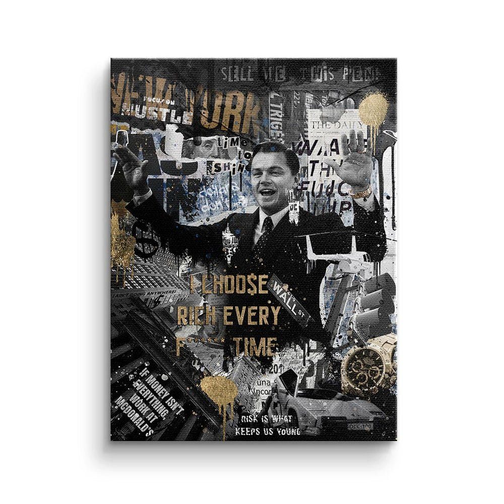 DOTCOMCANVAS® Premium Leinwandbild im Street Art Style mit provokanten Wolf of Wall Street Motiv von Jordan Belford.