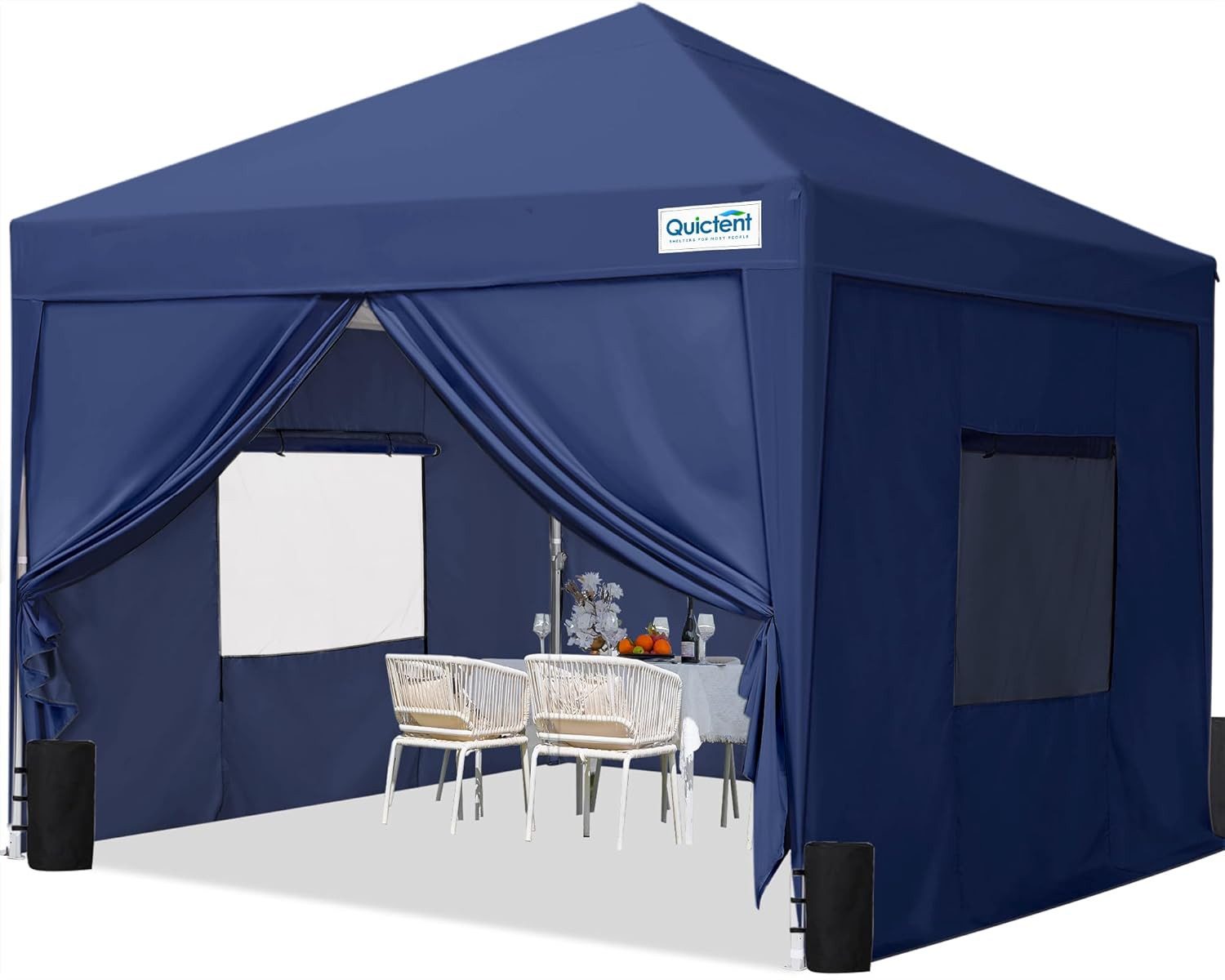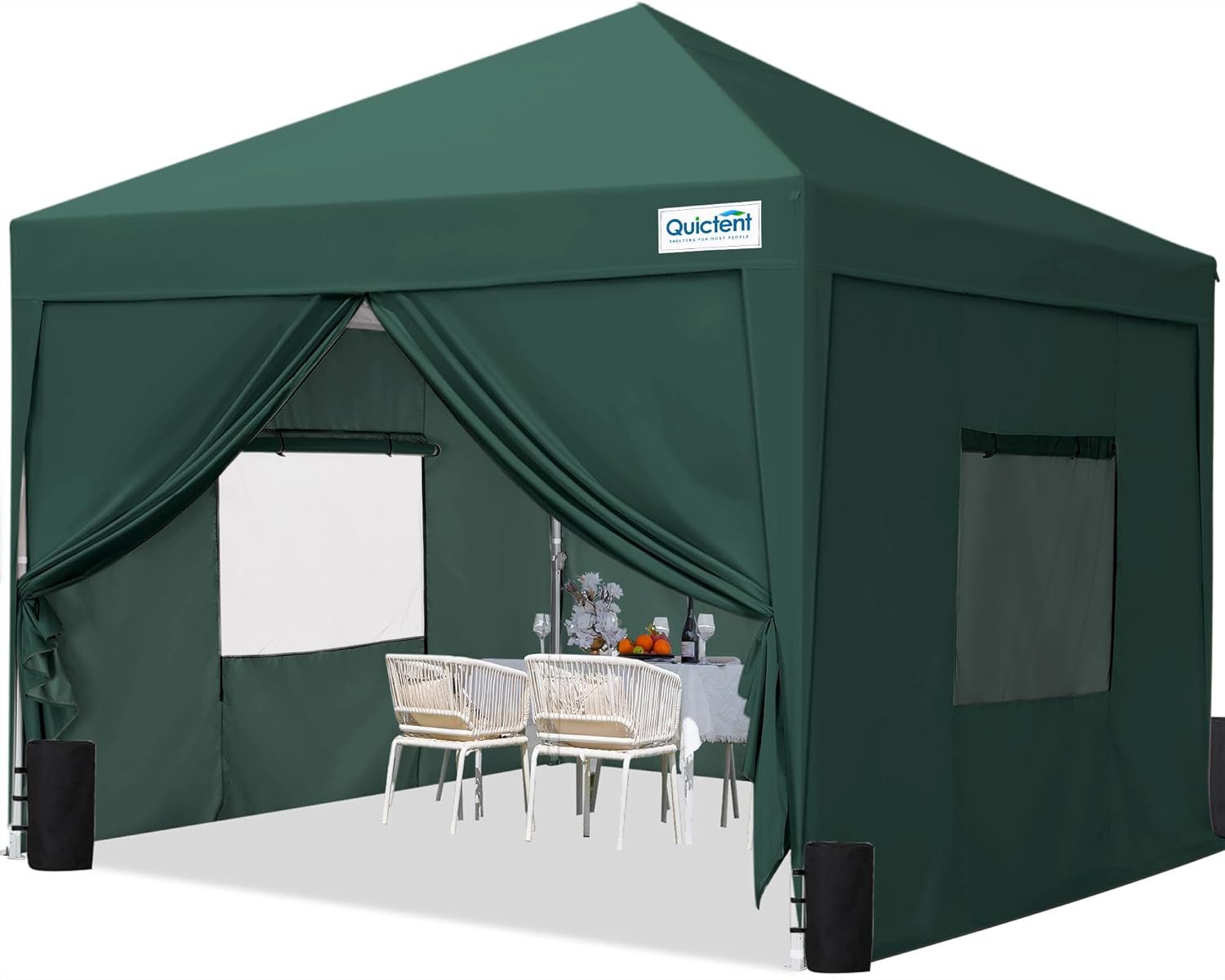 2 in 1 Quictent faltbarer Pavillon: das Dach des Pavillons ist aus speziellem 210D Oxford 100% Polyester, silber pulverbeschichtet, wasserdicht und UV 50 beständig, mit 4 abnehmbaren Seitenwänden, 2 mit Reißverschluss und 2 mit Moskitonetz.