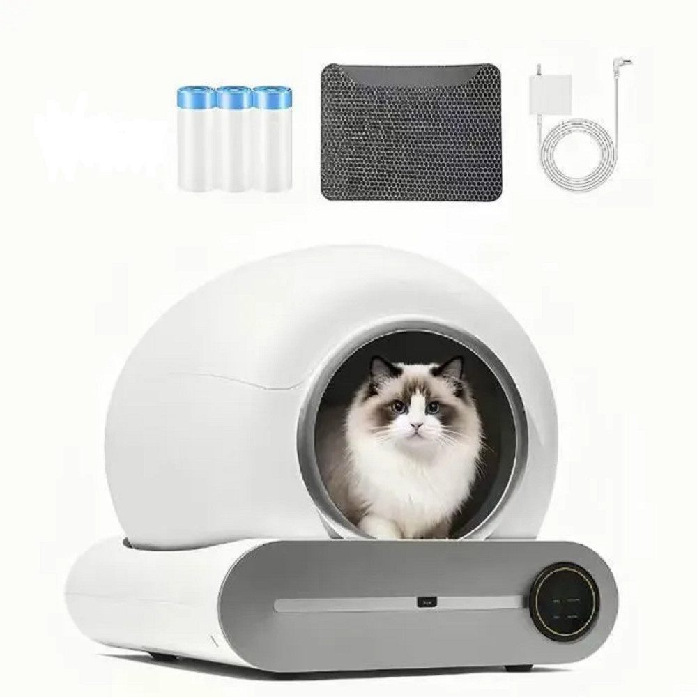 Befreien Sie Ihre Hände, Sie müssen kein Katzenstreu mehr schaufeln. Diese automatische Katzentoilette erspart Ihnen das ständige Schaufeln von Katzenstreu. Sie hat wirklich freie Hände, APP-Steuerung, automatische Reinigung und innovatives Design. Großer Innenraum: Die extragroße 65-Liter-Katzentoilette hat eine kompakte vertikale Form und einen niedrigen Eingang, sodass Katzen mit einem Gewicht von bis zu 8 kg problemlos ein- und aussteigen können. Oben befindet sich ein 9-Liter-Mülleimer, sodass Sie beim Reinigen Müllbeutel wechseln können, ohne sich bücken zu müssen. Separater Mülleimer, bequem zu entleeren und waschbar.