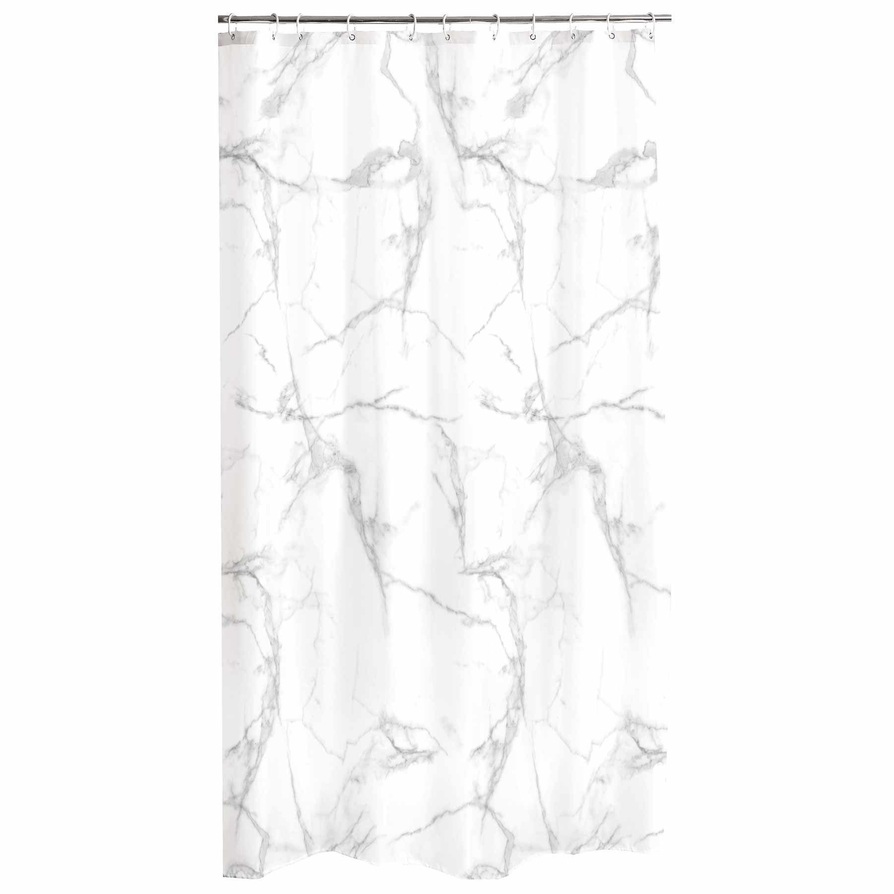 MARBRE Duschvorhang 180 x 200 cm weiß von der renommierten Marke Douceur d'intérieur aus wasserdichtem Polyester schützt Ihr Badezimmer vor Überflutungen beim Baden. Das hochwertige Material trocknet schnell, was keine schädlichen Mikroben darauf entwickelt. Darüber hinaus ist der Vorhang extrem pflegeleicht, es ist am besten nach dem Baden frei zu entfalten und kann bei 40ºC gewaschen werden. Starkes Material reißt trotz intensiver Nutzung und wiederholtem Waschen nicht ab. Douceur d'intérieur ist ein Garant für höchste Qualität.