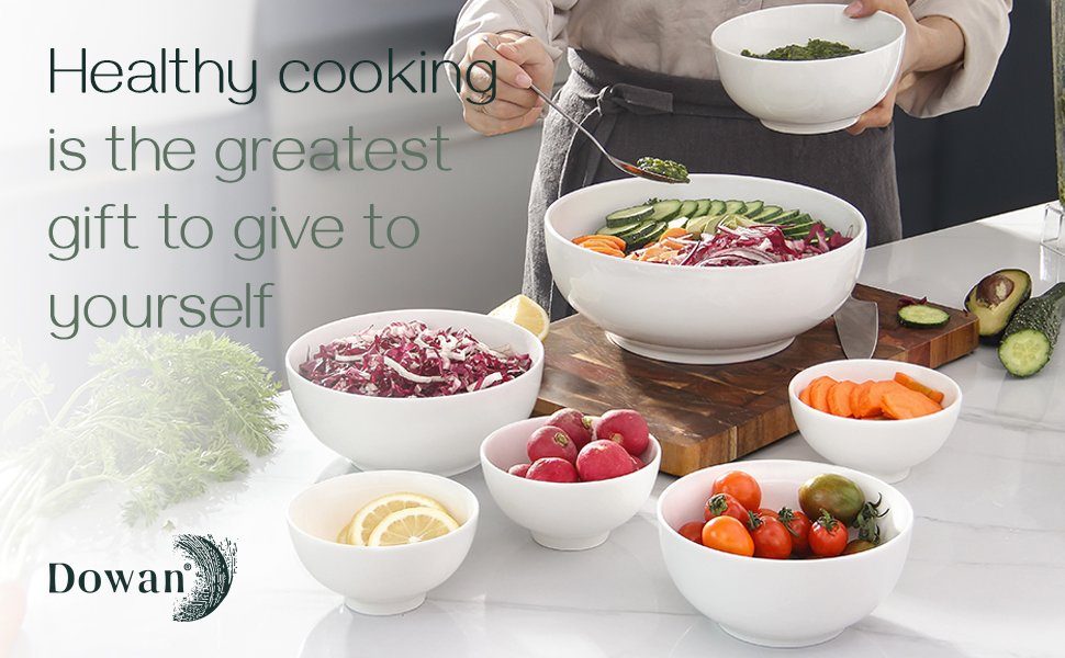 DOWAN 11cm Porzellanschalen - die alternative Option für Ihre Gesundheit Все DOWAN-Produkte sind bleifrei und bestehen aus gesundem Porzellan in AB-Qualität. Sie sind langlebig, fester und haltbarer als die meisten durchschnittlichen Schalen. Im Gegensatz zu Holz und Kunststoff nimmt Porzellan keine Bakterien oder Gerüche auf. Dies hilft, Lebensmittel frisch und sicher zu halten. Porzellan verliert nicht seine Form und liegt viel besser in der Hand (im Gegensatz zu Edelstahl).
