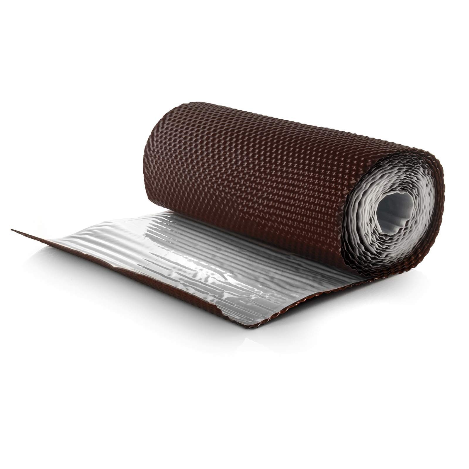 • Oberfläche- Bedeckt mit UV-resistentem Polyesterlack. Die geriffelte Struktur gewährleistet ein einfaches Modelieren und Anpassen des Kaminbandes an den Übergang zwischen Dachdeckung und Mauerwerk. • Ein selbstklebendes Band gefertigt aus strukturiertes Aluminium, mit Butylmasse auf der unteren Seite. • Das Band wird benutzt für Dichtung rund um Schornsteine, Außenmauern, Erker, Fenster und Dachfenster. • Das Band zeichnet sich mit einer Pyramidenförmige Struktur, was das Biegen der Band in alle Richtungen ermöglicht. • Das Produkt ist beständig gegen langzeitige Einwirkung von Witterungsfaktoren wie UV-Strahlung, Frost, Regen, Feuchte und Alterungsprozessen. • Erhältliche Farben: - BRAUN RAL 8017 - ZIEGELROT RAL 3011 - DUNKELBRAUN RAL 8019 - SCHWARZ RAL 9005 - GRAPHIT RAL 7016 - KASTANIEROT RAL 8012 - KIRSCHE RAL 3011