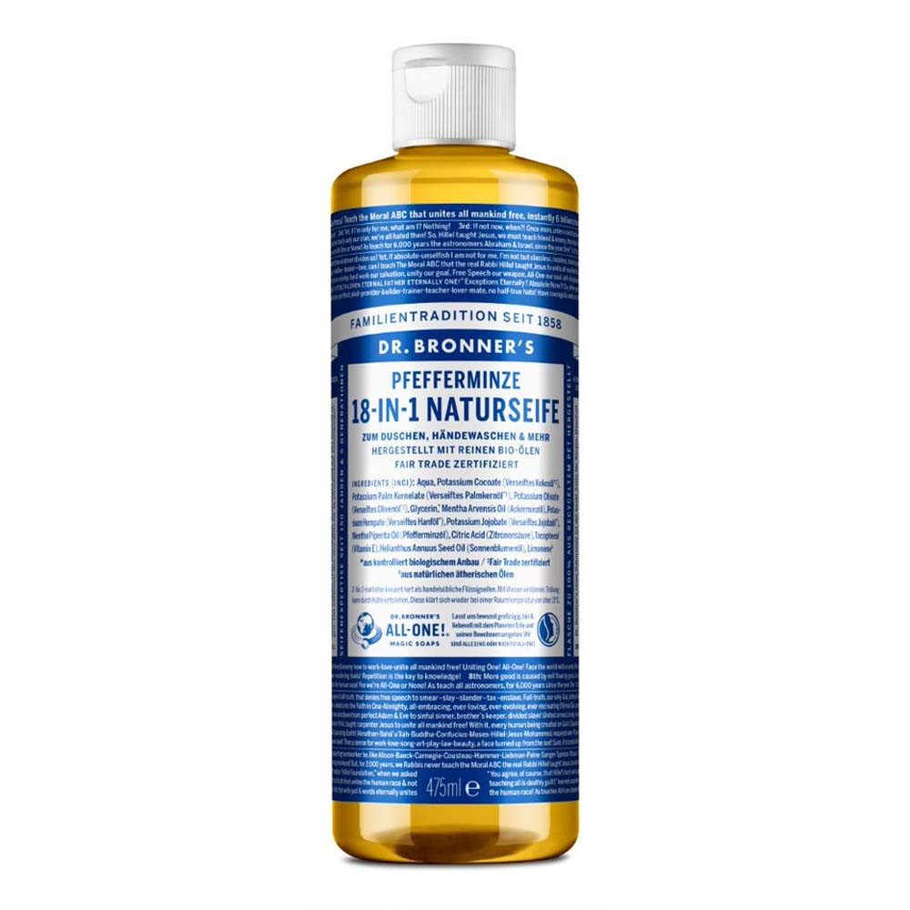 Die verseiften Öle reinigen schonend und natürlich, ohne zu fetten, und sind aus kontrolliert biologischem Anbau nach dem „National Organic Standards“-Programm zertifiziert. Die Seifen sind biologisch abbaubar, vegan und werden in Flaschen aus zu 100% recyceltem Plastik abgefüllt. Außerdem sind sie frei von synthetischen Schaumbildnern, Verdickungsmitteln, Petrochemikalien und Konservierungsstoffen. Der samtige Schaum entsteht nur durch die spezielle Mischung natürlicher Zutaten, der eine jahrelange Erfahrung zu Grunde liegt. Die Einhaltung unserer Fair Trade Standards wird regelmäßig durch das angesehene Schweizer Zertifizierungsunternehmen IMO überprüft. Sie fundieren auf unseren Werten, die Dr. Bronner’s nun schon seit 150 Jahren innehat und deren Kern der faire Umgang mit Mensch, Tier und Natur ist. Mit Dr. Bronner’s kannst Du jeden Tag dazu beitragen, die Welt ein kleines Stückchen besser zu machen. “We are All-One or None!“