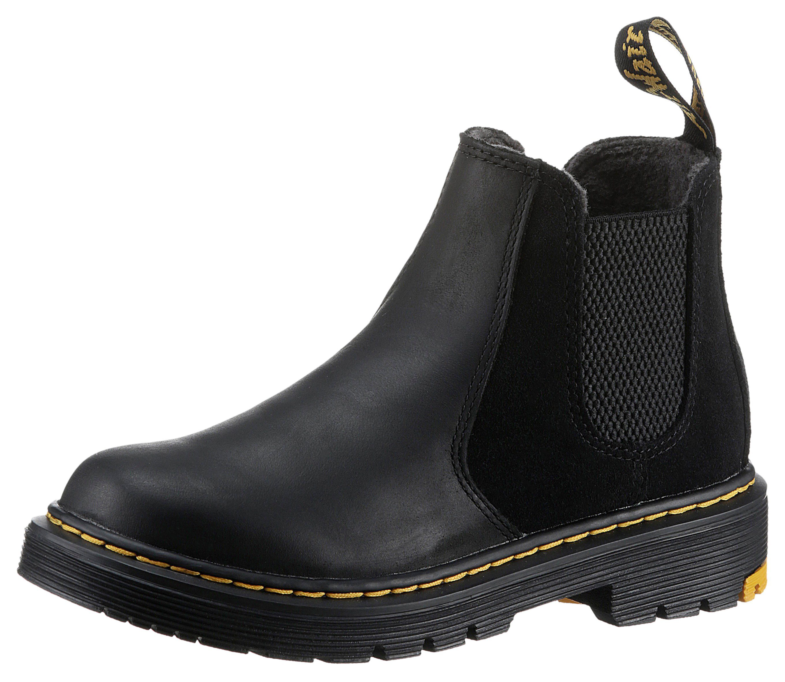Die Chelseaboots der Marke DR. MARTENS begleiten Kids auf Schritt und Tritt. Mit dem Reißverschluss und dem Stretcheinsatz ist der Schuh schnell angezogen und der Start in den Tag beginnt stressfrei.