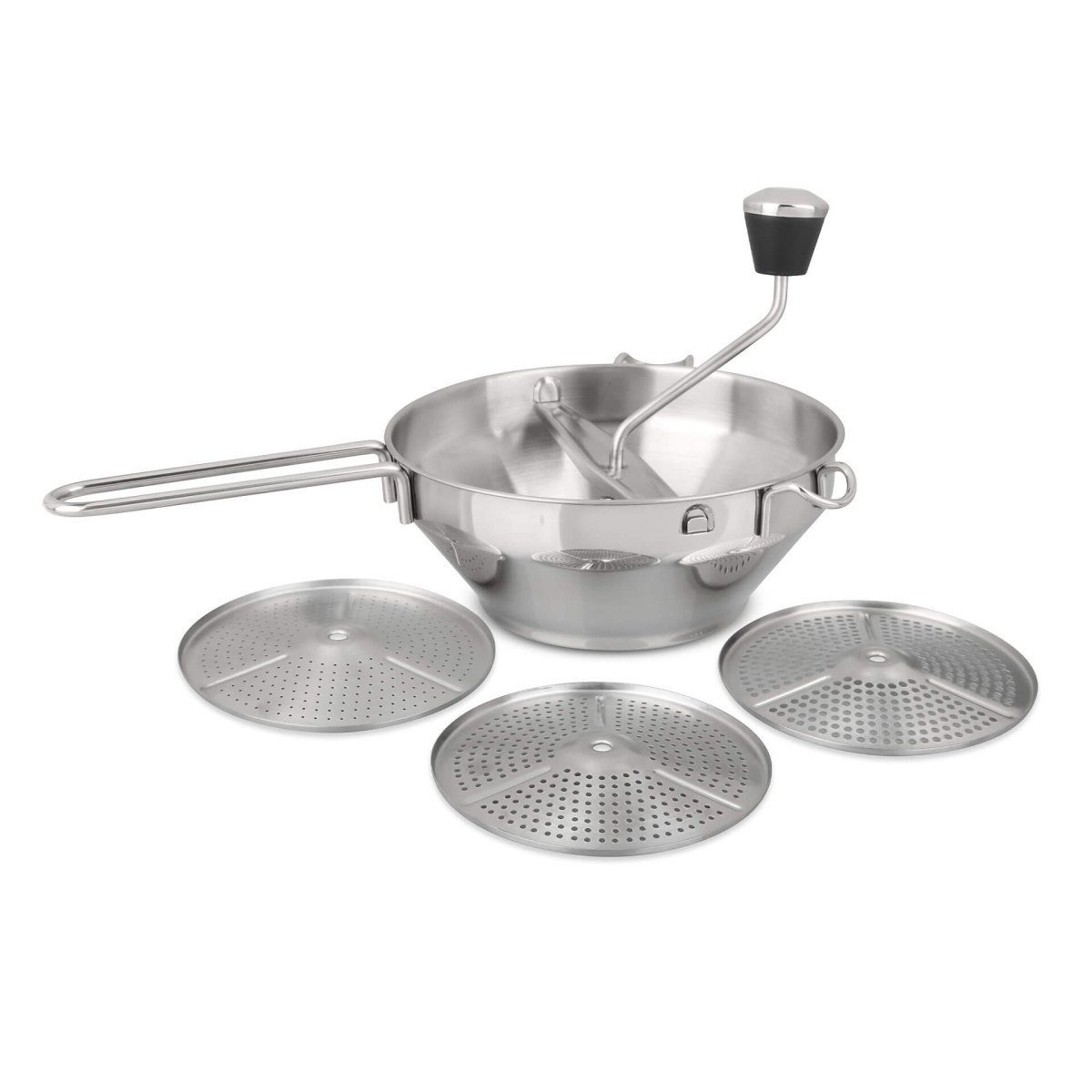 Das Dr. Oetker Passiergerät aus hochwertigem Edelstahl ist ideal geeignet für das einfache und feine Passieren von Obst, Gemüse und anderen Lebensmitteln. Drei Einsätzen mit unterschiedlicher Lochung (1,2,3 mm) sind inklusive. Das Gerät ist leicht zu handhaben und spülmaschinengeeignet.
