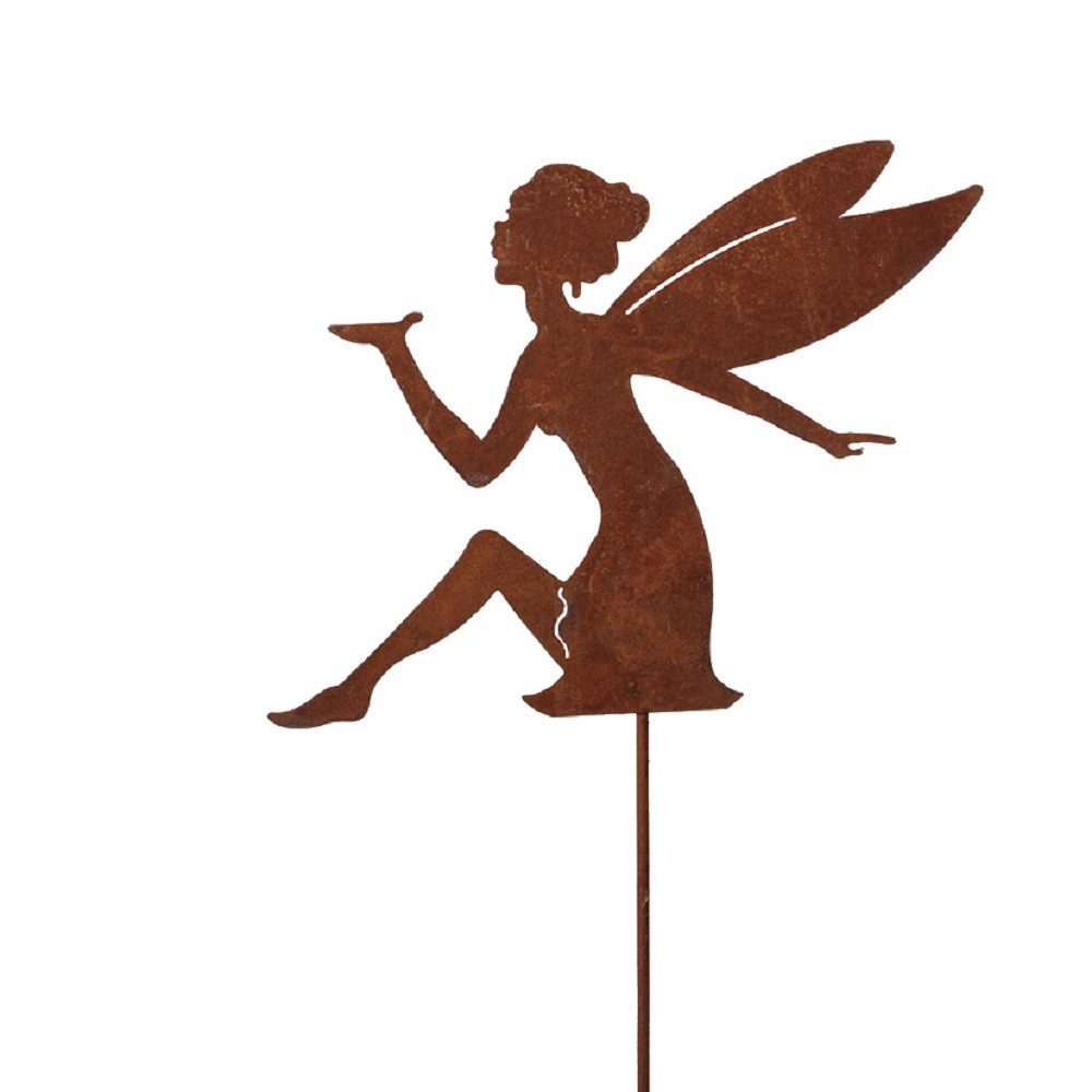 Metall Stecker. ELFE SITZEND. Rost Gartenstecker. 78 cm.