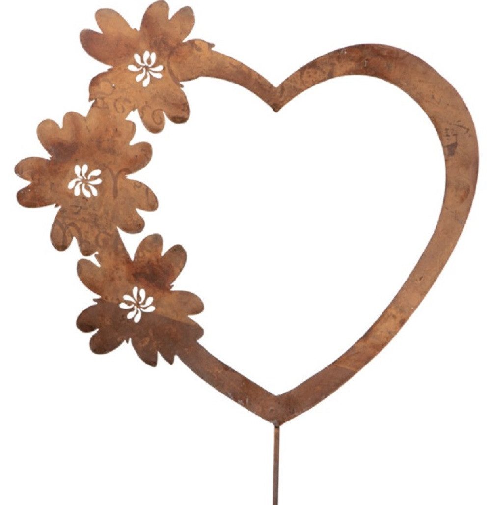 Metall Stecker. HERZ mit Blumen. Rost Gartenstecker. 73 cm.