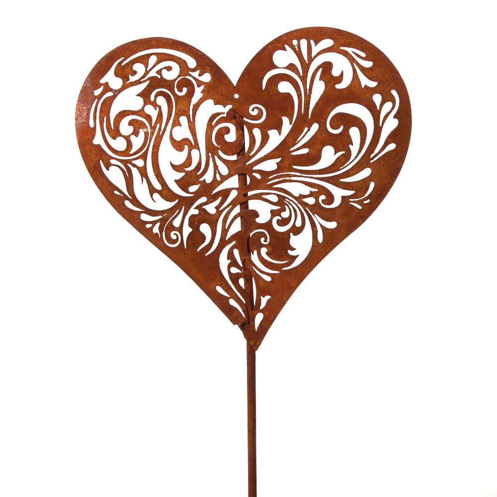 Metall Stecker. HERZ Rankenornament. Rost Blumenstecker. 38 cm.
