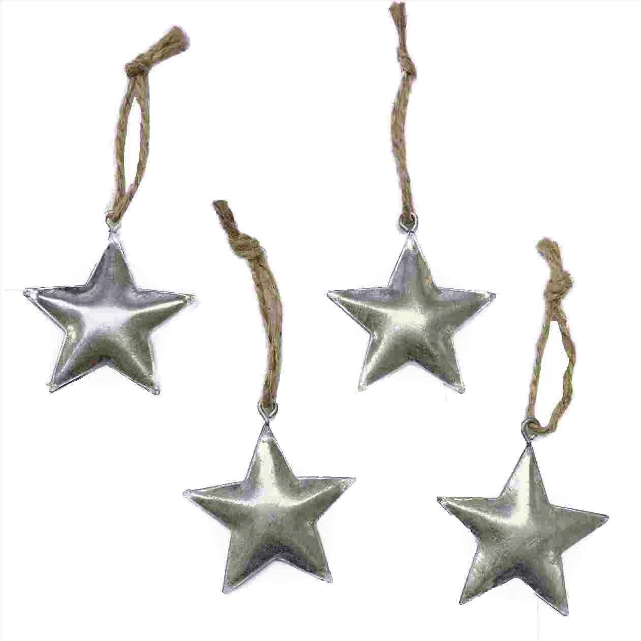 METALL-STERN mit Kordel, Sternhänger, Set 4x, ca. 4 cm. Zinkblech-Stern.