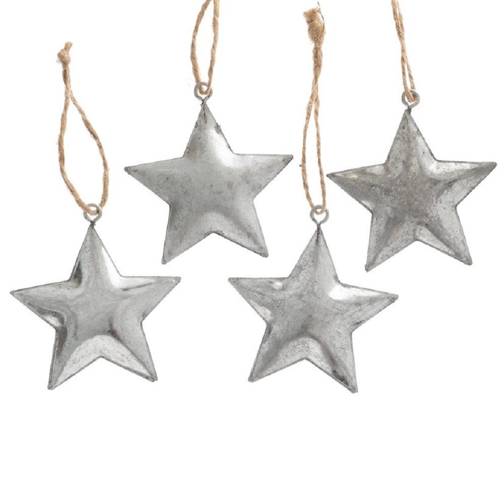 METALL-STERN mit Kordel, Sternhänger, Set 4x, ca. 5,5 cm. Zinkblech-Stern.