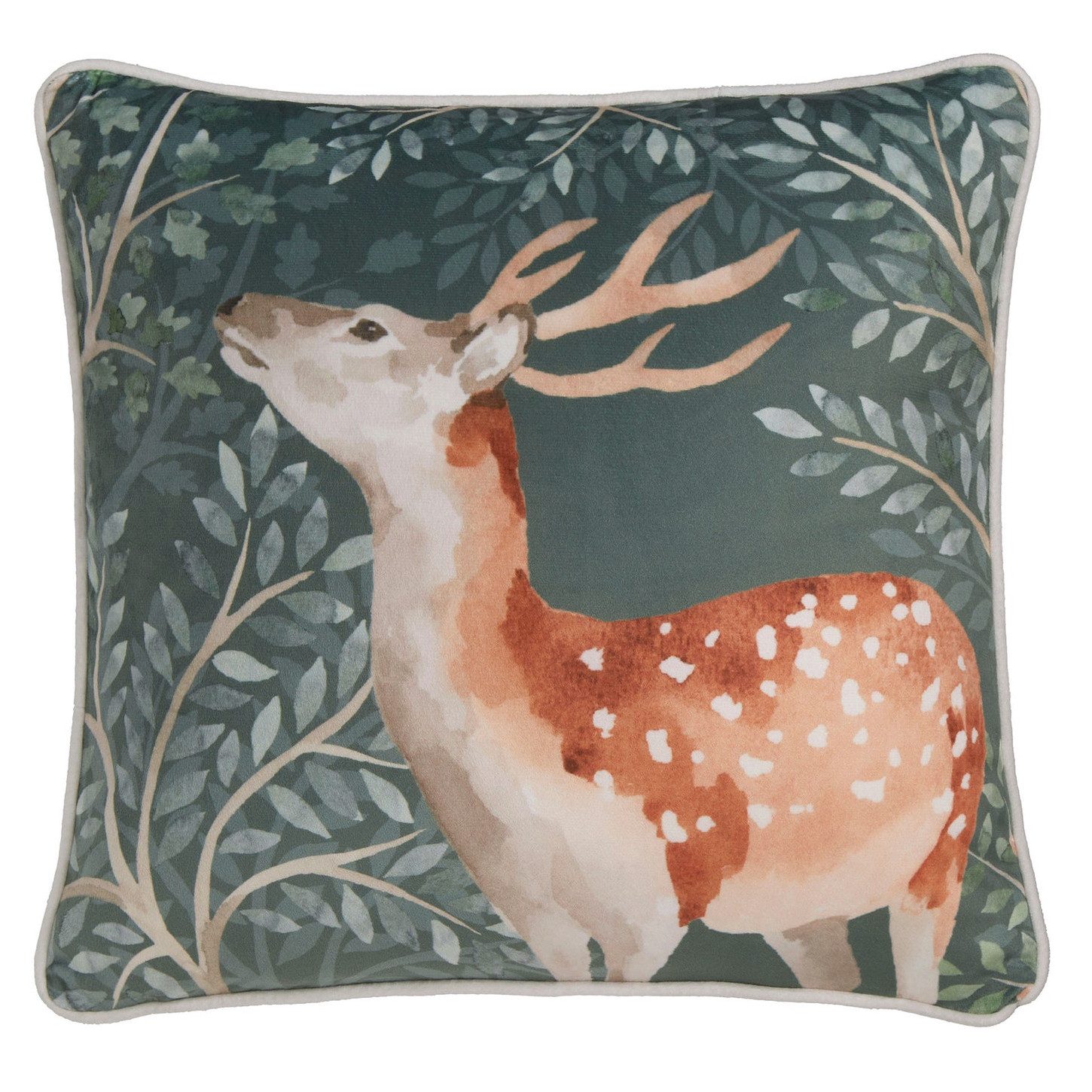 Ein handgemalter junger Hirsch ziert dieses wunderschöne Samtkissen. Die Rückseite ist mit einem dezenten Karomuster versehen – für zwei tolle Looks in einem. Die Paspelierung rundet das Design perfekt ab.