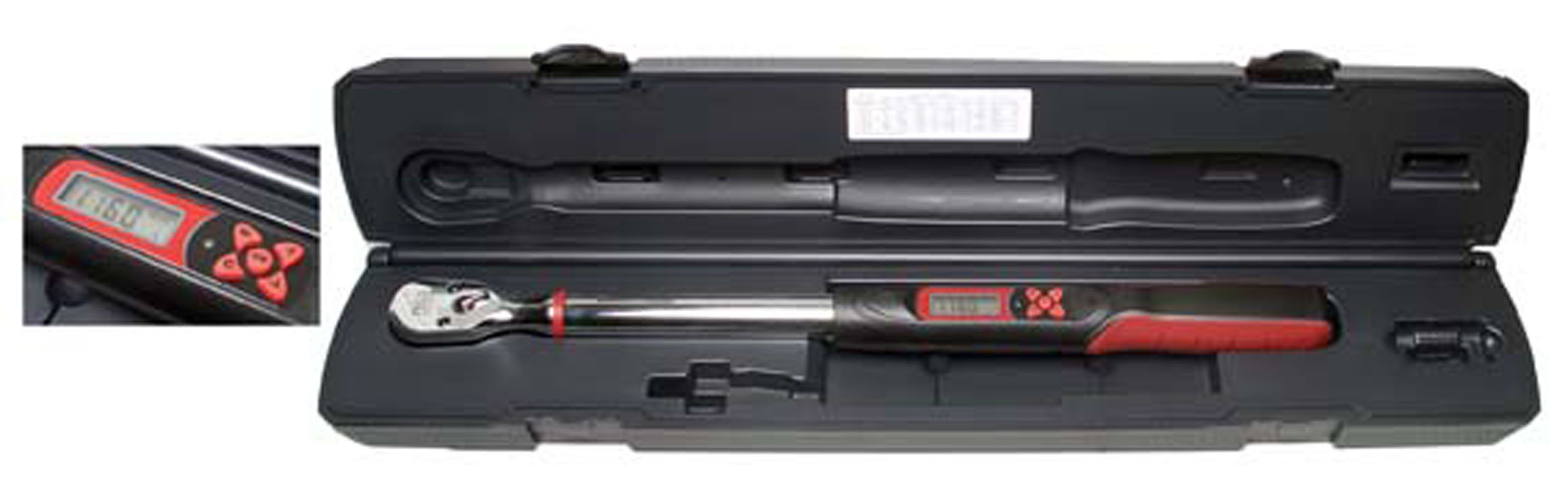 Drehmomentschlüssel 12,5 (1/2), mit Digitalanzeige, 40-200 NM - digitale Drehmomentanzeige - jedem Drehmomentschlüssel liegt ein Kalibirierungszertifikat bei - CW und CCW (Messung im und gegen den Uhrzeigersinn) - je nach Einstellung: Anzeige und Speicherung des erreichten Grenzwerts oder Anzeige des momentanen Drehmoments - Ton- und Lichthinweis (LED) bei Erreichen des einstellbaren Höchstwerts - verschiedene Maßeinheiten wählbar ( ft-lb, in-lb, N-m) - 50 Datenspeicherplätze für den Abruf vorheriger Werte und eine nahtlose Prüfung mehrerer Einheiten - Automatischer Ruhemodus nach 2 Minuten ohne Benutzung oder Eingabe - +/- 3% ige Messgenauigkeit bei Messungen im Bereich von 20-100% des max. Drehmoments - Betriebstemperatur -10° bis +50° C - ausführliche Bedienungsanleitung auf deutsch und englisch liegt dem Drehmomentschlüssel bei