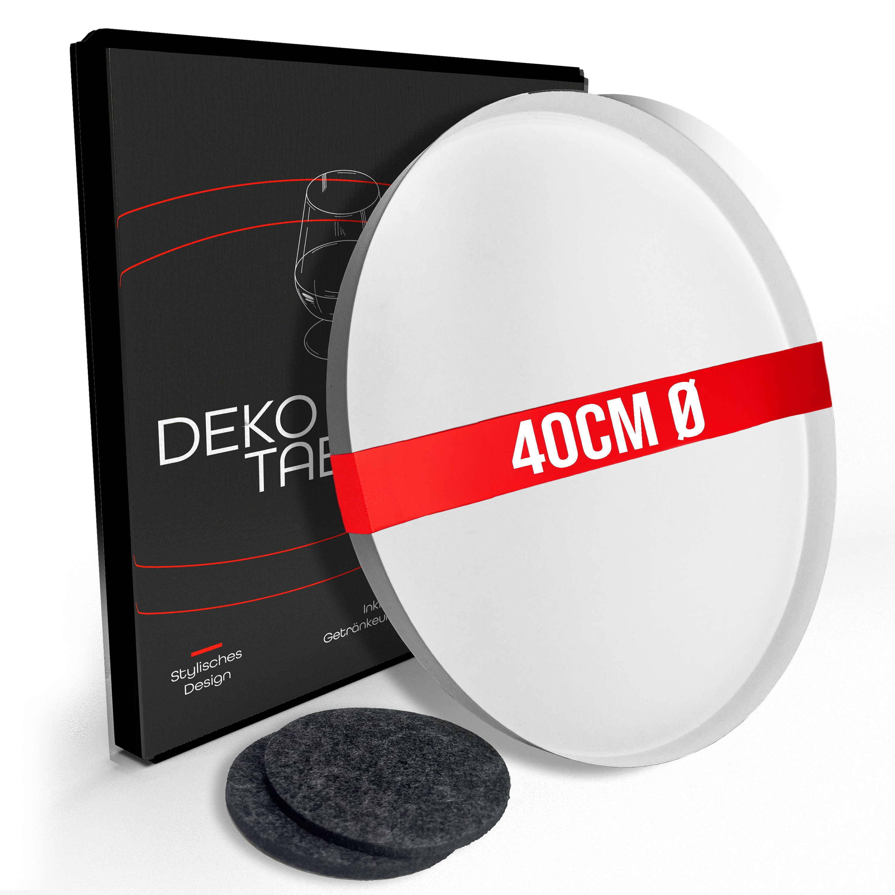 Das DREIBERG® Deko-Tablett ist ein vielseitiges und stilvolles Accessoire, das in zwei verschiedenen Größen und Farben erhältlich ist. Wichtig: Produkt: Das Tablett und die Getränkeuntersetzer sind unversehrt und von einwandfreier Qualität. Verpackung: Es kann vorkommen, dass die Verpackung leichte Beschädigungen wie Knicke oder Druckstellen aufweist. Trotz der beschädigten Verpackung bleibt das Produkt selbst hochwertig und funktionsfähig. - **Farben:** - Weiß - Schwarz - **Größen:** - Durchmesser von 30 cm - Durchmesser von 40 cm Das Set enthält zudem zwei passende Getränkeuntersetzer, was es zu einer perfekten Wahl für Dekorationen oder den praktischen Gebrauch macht. Es eignet sich hervorragend für den Wohnbereich, um eine moderne und schlichte Ästhetik zu schaffen. Das DREIBERG® Deko-Tablett wird als 1a-Ware verkauft, wobei die Verpackung beschädigt sein kann.