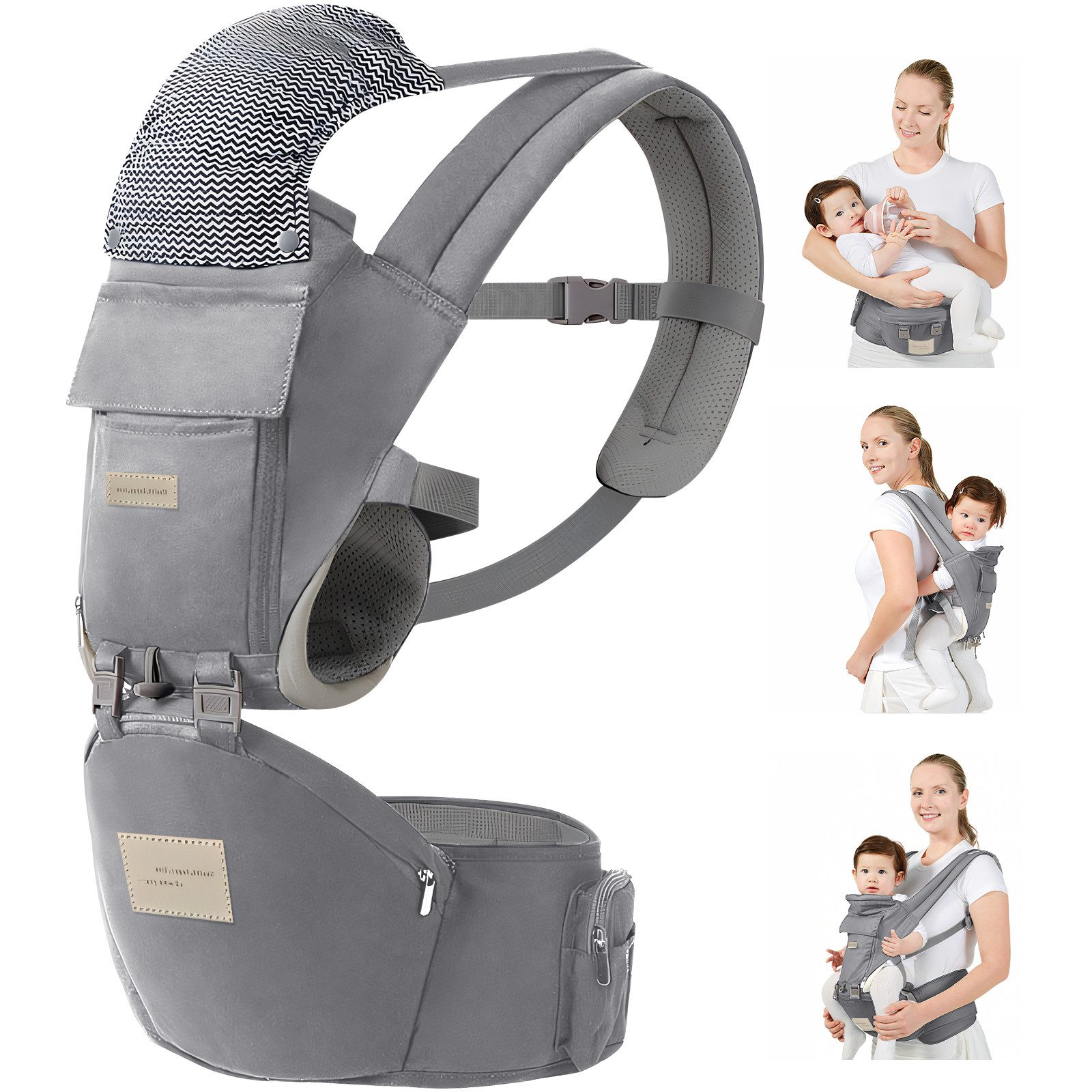 Babytrage mit Hüftsitz gibt es in drei Kombinationen und mehreren Tragemöglichkeiten. Die verbesserte Trage verfügt über viele detaillierte Designs wie verdickte Schultergurte und einen verbreiterten Hüftgurt, um Ihren Komfort und die Sicherheit Ihres Babys zu gewährleisten. Die Babytrage eignen sich ideal für den Einsatz im Alltag, auf Reisen oder auf Reisen und geben Ihnen die Hände frei.