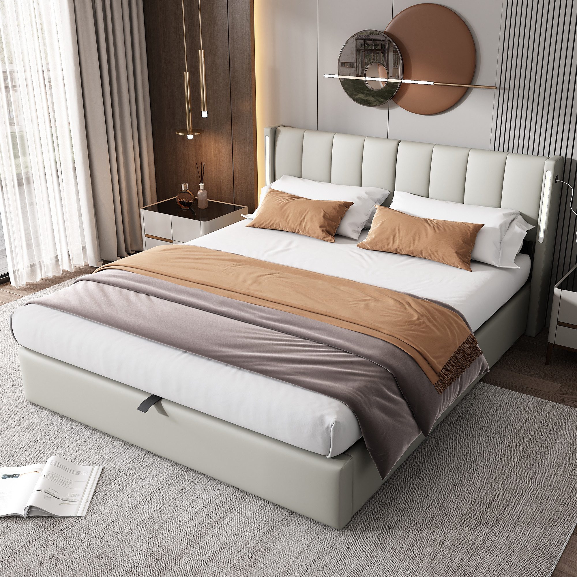 Modernes Erscheinungsbild: Dieses Bett ist in Weiß gehalten, schlicht und elegant und passt zu einem modernen Einrichtungsstil. Das Design des Bettes mit Typ-C- und LED-Schnittstellen ist nicht nur leistungsstark, sondern verleiht auch ein Gefühl von Modernität und Technologie und macht das gesamte Bett attraktiver.