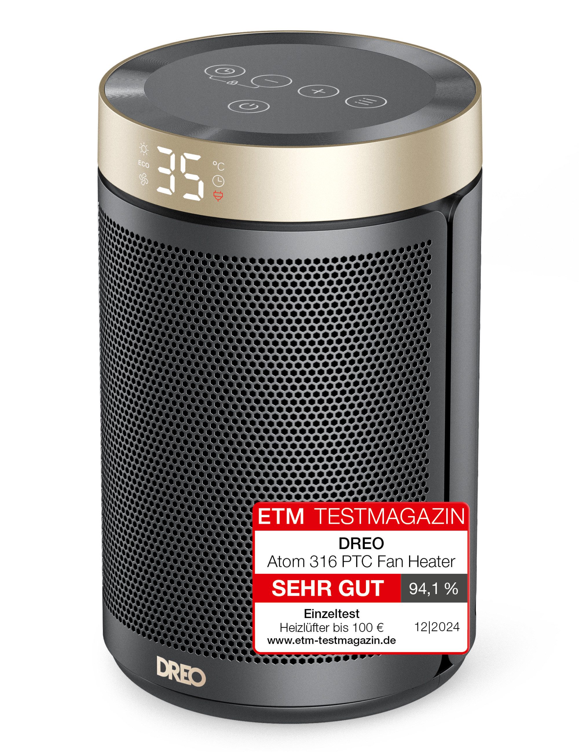 Modellbezeichnung | Dreo Energiesparender Heizlüfter, 34 dB leise, 1500 W elektrischer PTC-Keramikheizer, Thermostat, Überhitzungs- und Kippschutz, 12-Stunden-Timer, Elektroheizer für Räume, Schlafzimmer, Atom 316, Silver |