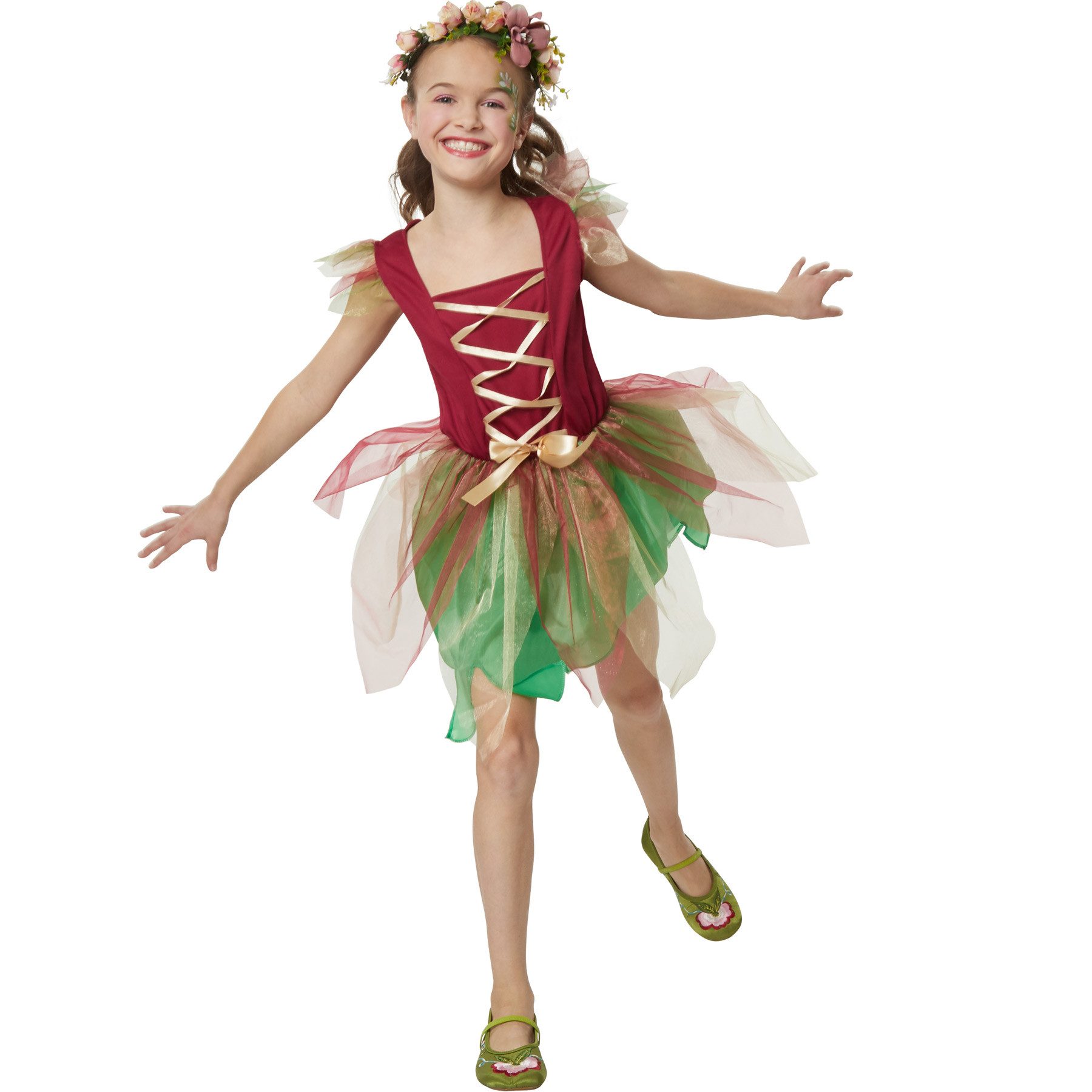 Das Mädchenkostüm "Waldelfe" eignet sich hervorragend für Märchenabenteuer und festliche Anlässe. Ob als schützende Waldelfe, geheimnisvolle Naturgöttin oder fröhliche Blumenprinzessin – dieses Kostüm lädt zum Träumen und Verwandeln ein.