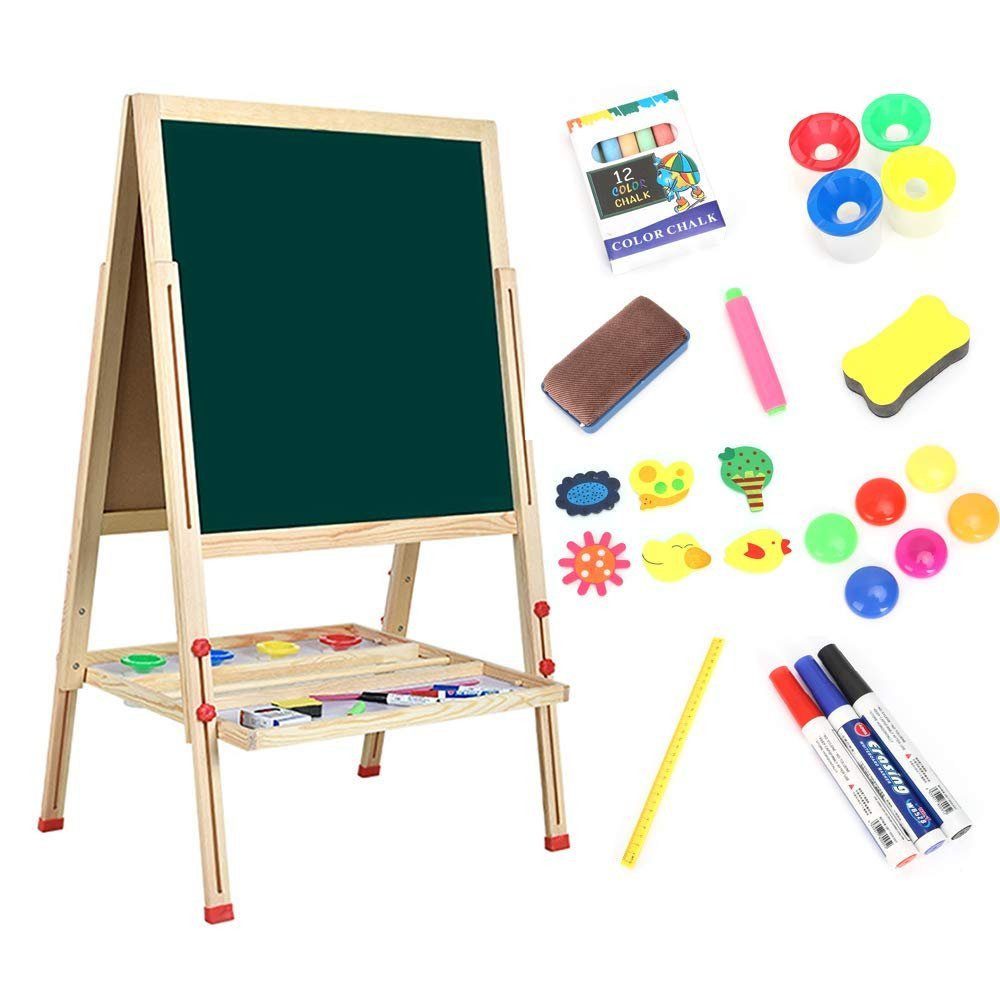 Doppelseitige Design: Die Kinder Tafel ist doppelseitig Eine weiße magnetische Tafel und eine Tafel zum Beschreiben. Zwei Kinder können gleichzeitig verwenden.