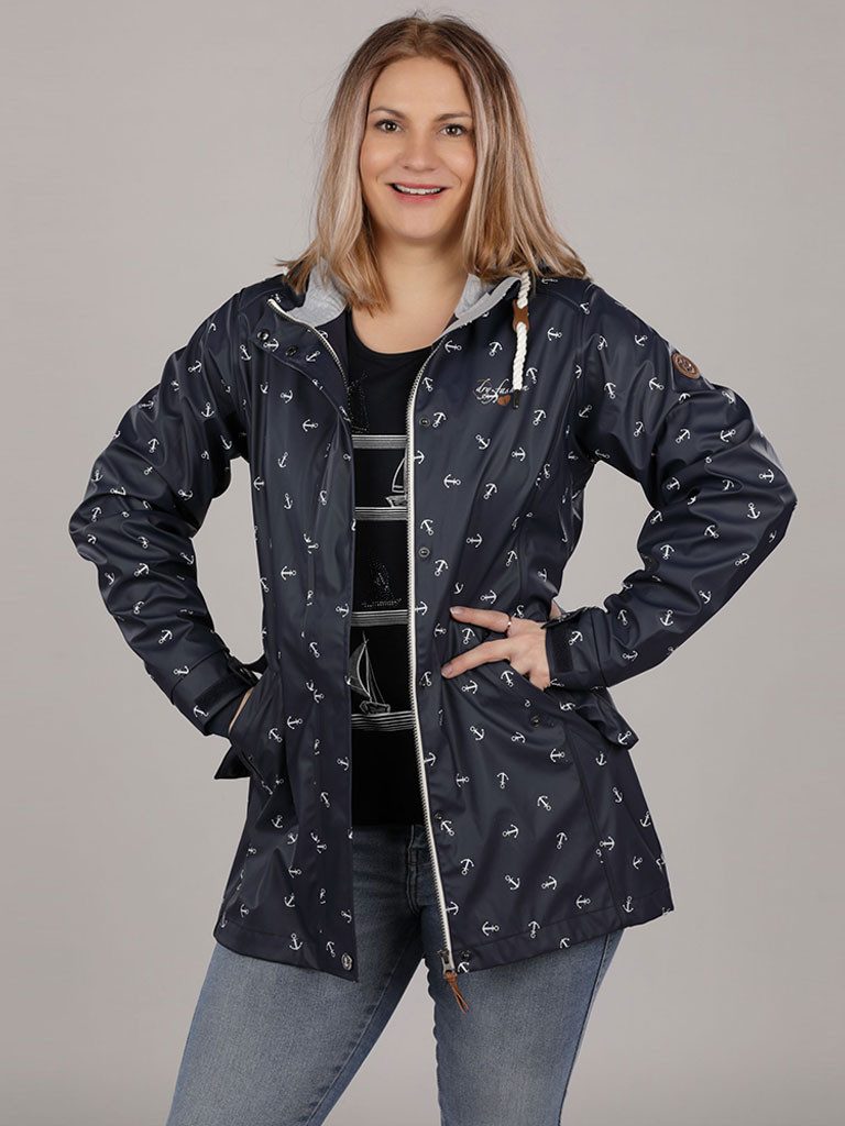 Besondere Merkmale | Damen Regenmantel Cuxhaven Anker-Print - Jacke mit Kapuze wasserdicht |