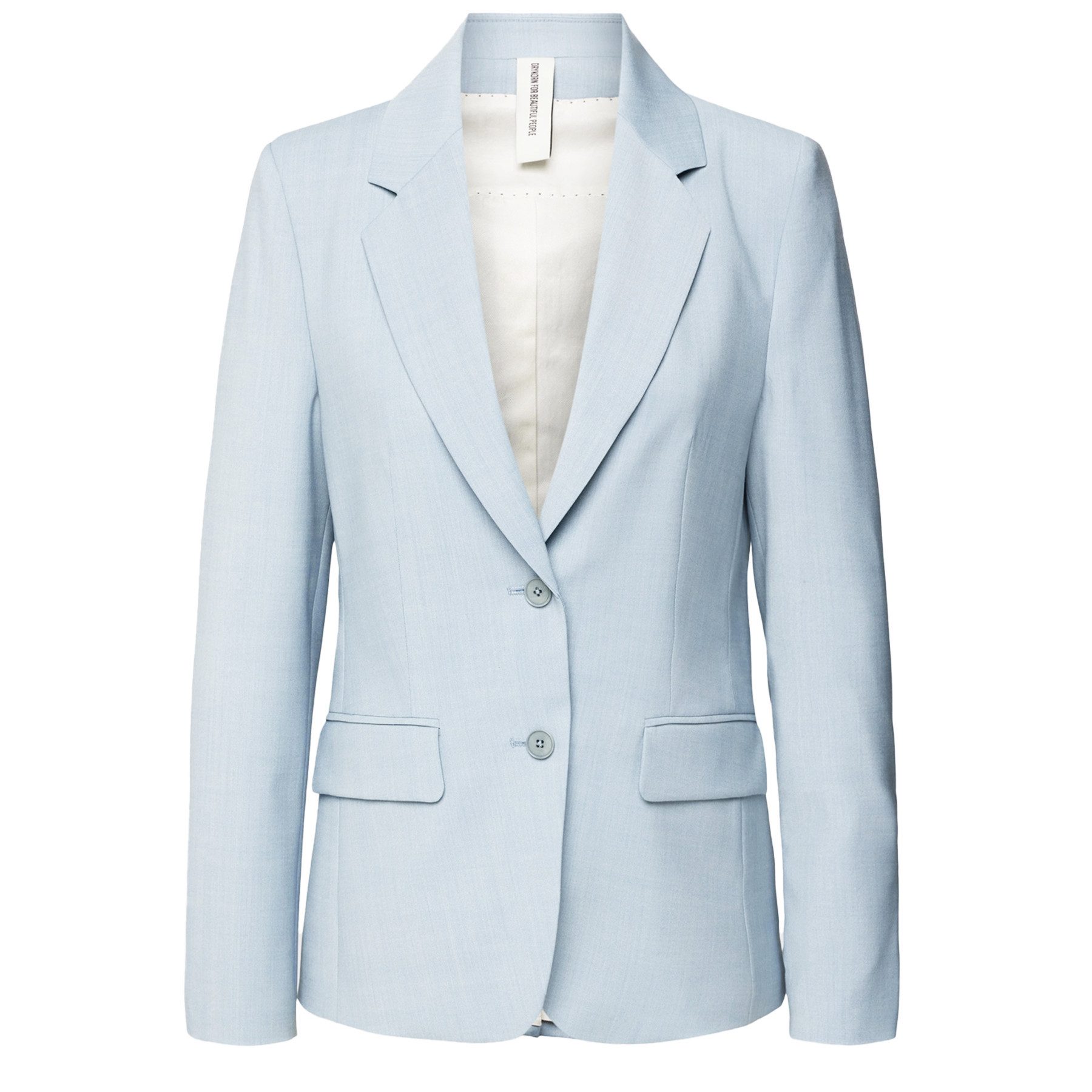 Der Blazer BUNDREY von DRYKORN in blau ist ein elegantes Kleidungsstück, das in keinem Kleiderschrank fehlen sollte. Mit seinem leicht taillierten Schnitt und dem klassischen Reverskragen verleiht er jedem Outfit eine stilvolle Note. Die leicht gepolsterten Schultern sorgen für eine perfekte Passform, während der Zweiknopfverschluss und die seitlichen Pattentaschen den Blazer funktional und modisch machen. Eine zusätzliche Innentasche sorgt für praktischen Stauraum. Der Gehschlitz in der hinteren Mitte sorgt für Bewegungsfreiheit und Komfort. Das glatte Innenfutter und der feine Griff zeugen von der hochwertigen Verarbeitung und dem Tragekomfort dieses Blazers. Die Herstellerfarbe Blue 3900 sorgt für einen frischen und vielseitigen Look. Hergestellt aus einem hochwertigen Materialmix aus Polyester, Wolle und Elasthan bietet dieser Blazer sowohl Strapazierfähigkeit als auch angenehme Trageeigenschaften. Er lässt sich ideal zu klassischen Jeans oder eleganten Röcken kombinieren und passt sowohl zu Blusen als auch zu lässigen T-Shirts. Sneakers für einen lässigen Look oder elegante Pumps für formelle Anlässe runden das Outfit perfekt ab. Ein schicker Schal oder ein stilvolles Tuch und eine modische Tasche machen das Ensemble komplett. Der Blazer BUNDREY ist der ideale Begleiter für Büro, Freizeit und besondere Anlässe.
